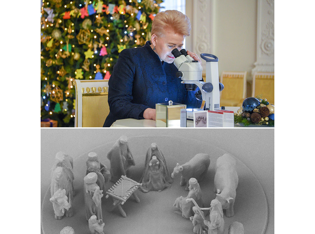Naime, mikroskopske jaslice izradio je znanstvenik s Vilnius sveučilišta, a financirala ih je litvanska Vlada. Nevjerojatno male skulpture replika su jaslica s Katedralnog trga u Vilniusu. Ovo umjetničko djelo 10 000 puta je manje od originala koji su u prirodnoj veličini. Za njihovu izradu znanstveniku je bilo potrebno 30 dana.