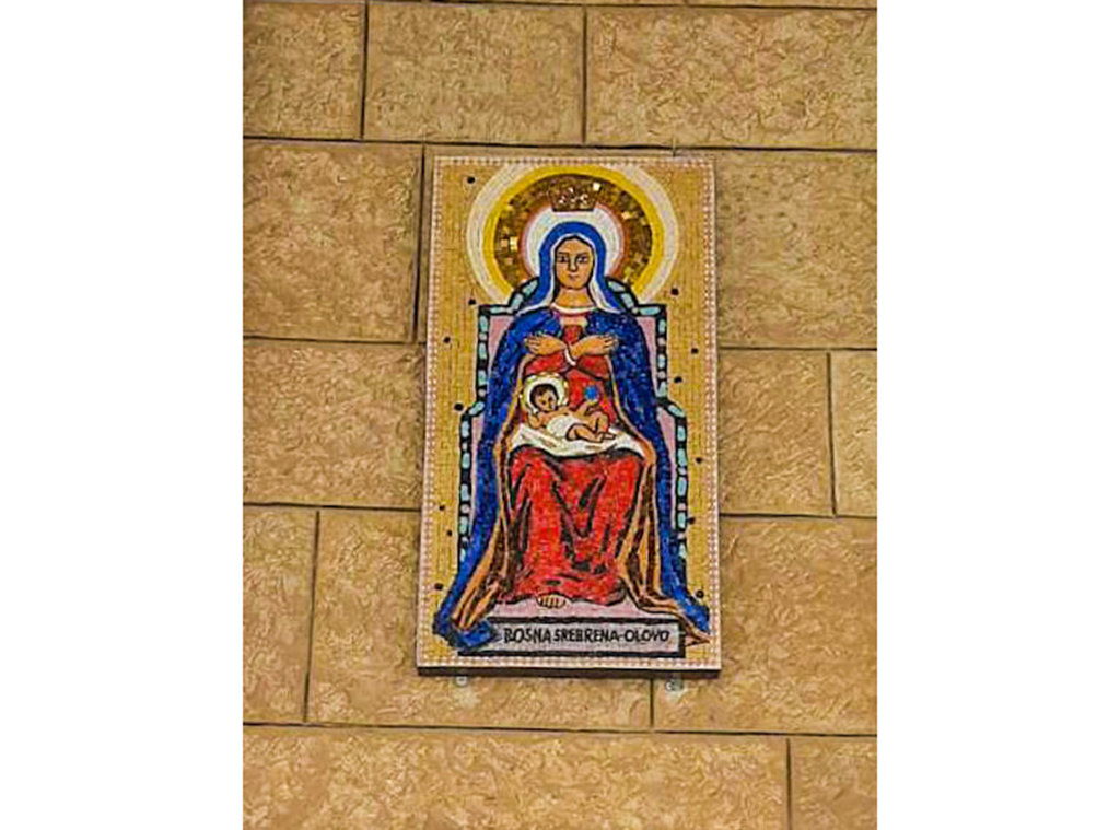 Pojednostavljenu skicu za mozaik prema čudotvornoj slici Gospe Olovske izradio je akademski slikar Đuro Seder, a mozaik je napravljen u Nazaretu. Mozaik stoji s natpisom "Bosna Srebrena - Olovo", piše bosnasrebrena.ba.