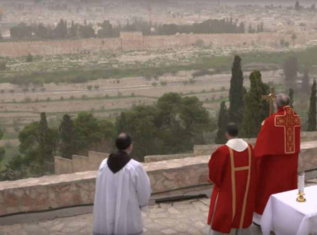 Onemogućen da predvodi tradicionalnu procesiju na Cvjetnicu, nadbiskup Jeruzalema mons. Pierbattista Pizzaballa, apostolski administrator Latinskog jeruzalemskog patrijarhata, 5. travnja blagoslovio je grad relikvijom Pravoga križa.