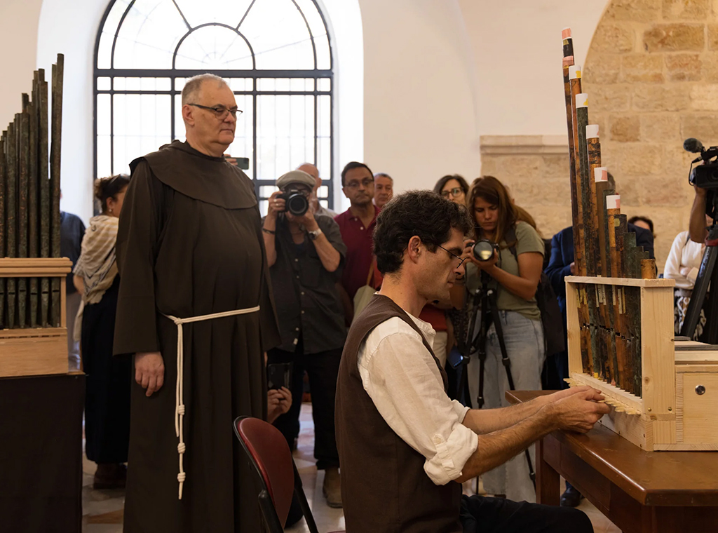 Prvi put u modernoj povijesti, kako piše custodia.org, svirala srednjovjekovnih orgulja odjeknula su svojim autentičnim zvukom, nakon gotovo 800 godina tišine. Dogodilo se to u Jeruzalemu, gdje je španjolski muzikolog David Catalunya s Instituta za glazbenu umjetnost Complutense (ICCMU) izveo liturgijsku pjesmu iz 11. stoljeća Benedicamus Domino Flos filius koristeći originalne cijevi Betlehemskih orgulja.