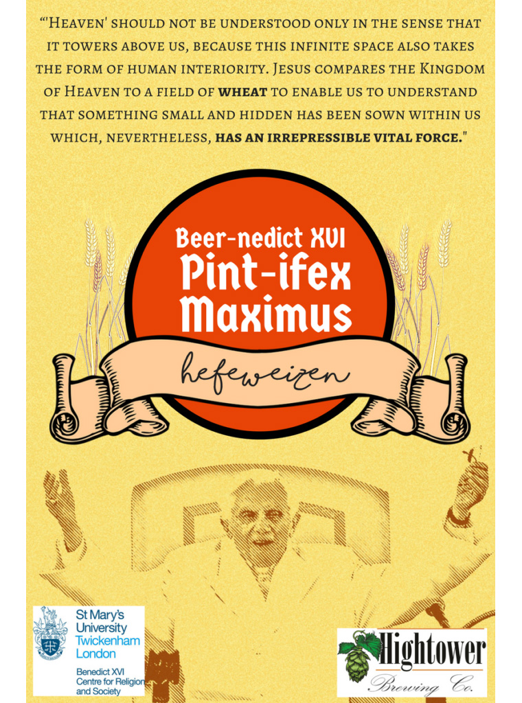 Profesor Stephen Bullivant, ravnatelj ovoga Centra je ovom je prigodom rekao: „Papa emerit je počastio St Mary’s sveučilište svojim posjetom 2010. I poput njega mi volimo dobro pivo. Stoga se čini kao je ovo primjeran i zabavan način da Centar objedi 90. Benediktov rođendan i 25. godišnjicu Društva katoličkih društvenih znanstvenika.”