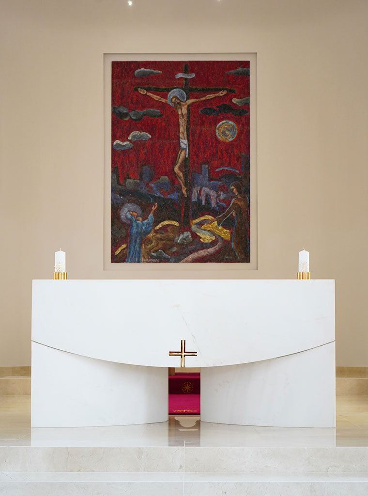 Arhitektica Škrobo stvorila je svečani prostor u kojemu vlada harmonija svjetlosti i sjena. To je himna uzvišene radosti, koja traži odgovor na pitanje: Može li čovjek stajati na ovom čistom svetom mjestu?