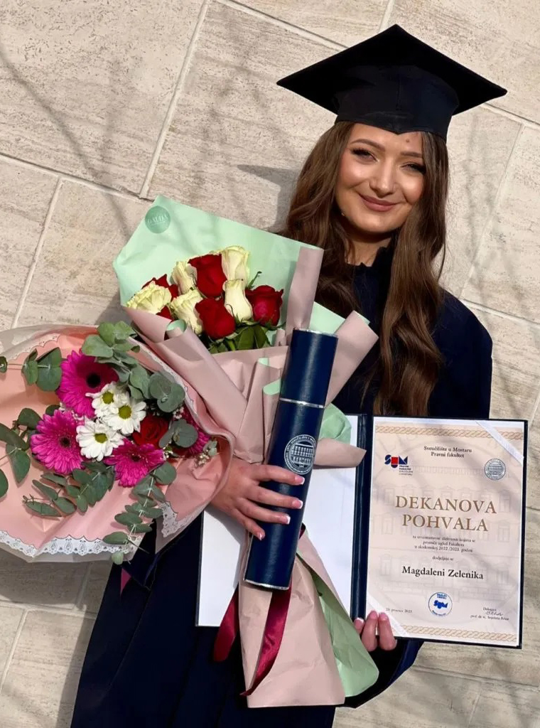 S ovom samozatajnom i marljivom djevojkom razgovarali smo o svim životnim temama. Zanimljiva je bila njezina spremnost da progovori o svemu, da pokaže svoj trud tijekom školovanja i svoja htijenja. Najprije smo je pitali kako je živjeti na Uzdolu? “Živjeti na Uzdolu je uistinu predivno napose ljeti i zimi, u božićno vrijeme, kada je cijela obitelj na okupu. Osoba sam koja voli mir i tišinu te mi uistinu prija život na Uzdolu. Uzdol je predivno mjesto za život. Ima pogodnu klimu pa uspijeva znatan dio poljoprivredne kulture i ljudi se mogu zdravo hraniti zahvaljujući svome radu. Moj otac Kazo se uvijek, i dok je radio kao matičar na Uzdolu, bavio i bavi poljoprivredom, sadio je šljive, aronije, jabuke, kruške, breskve, trešnje, grožđe, kupine, orahe, lješnjake, bijeli luk te sagradio dva plastenika u kojima sadi paradajz, paprike, krastavce, salatu, jagode i druge plasteničke proizvode koji mu uvijek uspijevaju. S obzirom na veliko poljoprivredno bogatstvo, na Uzdolu mi nikad nije dosadno jer uvijek ima nešto za raditi. Savjeti moga oca su bili da jednoga dana upišem poljoprivredni fakultet ili fakultet geodezije, ali moje srce se odlučilo za studiranje prava te sam po završetku Opće gimnazije u Prozor-Rami, 2019., upisala Pravni fakultet na Sveučilištu u Mostaru te ove godine, nakon obrane Diplomskog rada, koju planiram u rujnu, stječem akademsku titulu i zvanje magistrice prava. Studentski život mi je uistinu brzo prošao jer sam pored redovitih studentskih obveza, dosta pažnje posvetila izvannastavnim aktivnostima i na taj način širila vidike i stjecala praktične vještine koje su pravnicima neophodne za bolje razumijevanje bogate teorije koju stječu na studiju prava. Istaknula bih sudjelovanje na Regionalnom natjecanju u Nišu iz oblasti ljudskih prava, Državno natjecanje u Sarajevu iz oblasti kaznenog prava te Ljetne škole ljudskih prava u Bosni i Hercegovini odnosno Republici Hrvatskoj, kao i obnašanje funkcije studentske pravobraniteljice Sveučilišta u Mostaru te predsjednice Europskog udruženja studenata prava ELSA Mostar.”