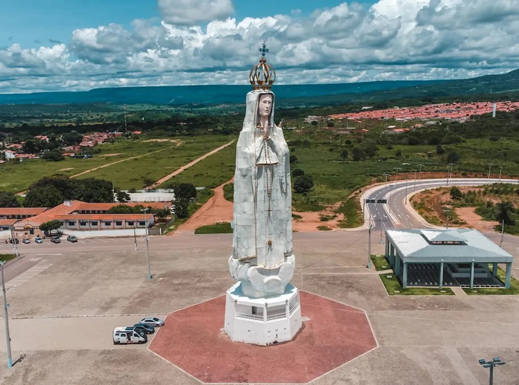 Novi kip, izgrađen od unaprijed proizvedenih segmenata sastavljenih na lokaciji, smješten je unutar svetišta Gospe Fatimske u Cratu. Sam kompleks uključuje i repliku Kapelice ukazanja iz Fatime u Portugalu, čime se brazilska marijanska pobožnost povezuje s globalnom pričom o Gospinim ukazanjima.