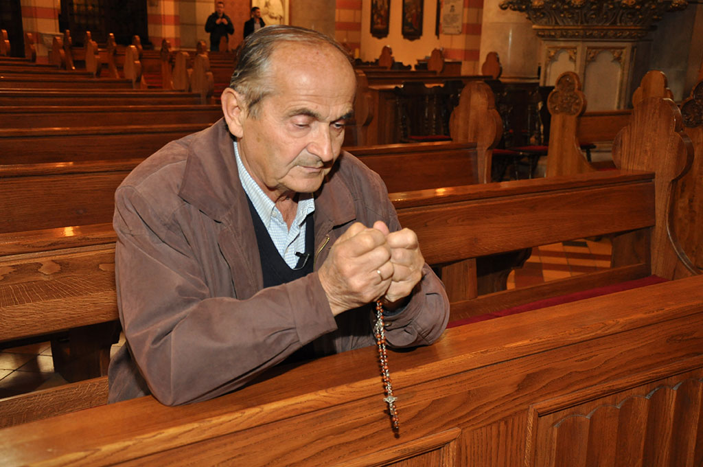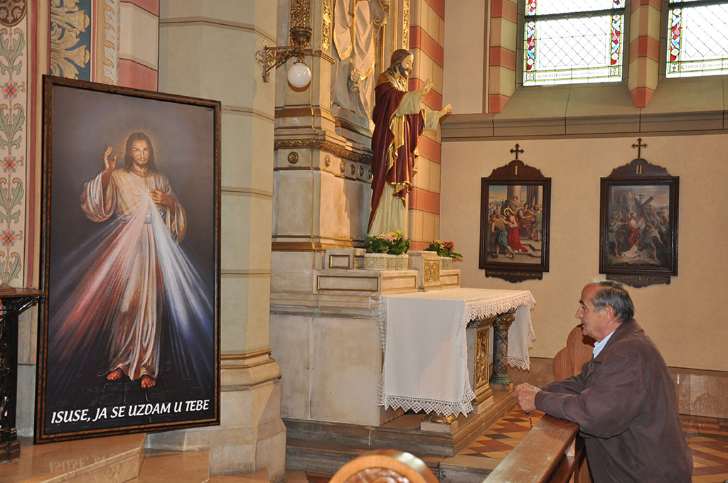 Iz župnog ureda s njim smo prošetali i do katedrale, do koje se rado pozdravio čini se sa skoro svakim prolaznikom, čime smo potvrdili početnu premisu. Ondje nam je kazao kako župljani svakog petka pred slikom Božanskoga Isusa mole Milosrđe Božje i Krunicu Presvetoga Srca Isusova. „To je uveo naš župnik Marko i bude dosta odaziva. Najdraža mi je opet krunica Majke Božje koju molim već evo 30-40 godina, pogotovo svibanjska i listopadska pobožnost, ali sam jako žalostan zato što je odaziv tada vrlo slab. Uglavnom nas moli troje-četvero, a nekad i ja sam... Iako i Papa poziva na to, i naš kardinal, i župnik stalno animira, ali odaziva nema, ne znam zašto“, tužno i zamišljeno je kazao naš sugovornik koji je istaknuo kako se mladi moraju što više uključiti. „I ja se uvijek pitam zašto neće – je l' nemaju ljubavi prema bližnjemu, prema Bogu ili neće 'trošiti' svoje vrijeme?! A bez ljubavi prema Bogu nema im života ni spasenja. Zato molim sve mlade da djeluju u svojim zajednicama, a ima raznih načina i mogućnosti... Žalosna je činjenica da su mladi bili privrženiji župi u komunizmu, nego danas“, kazao je Veselko na kraju poručujući kako je bitno da svi, a poglavito mladi, pristanu uz svoju Crkvu, župnu zajednicu, župnika i vode svoj život kako Bog zapovijeda.
