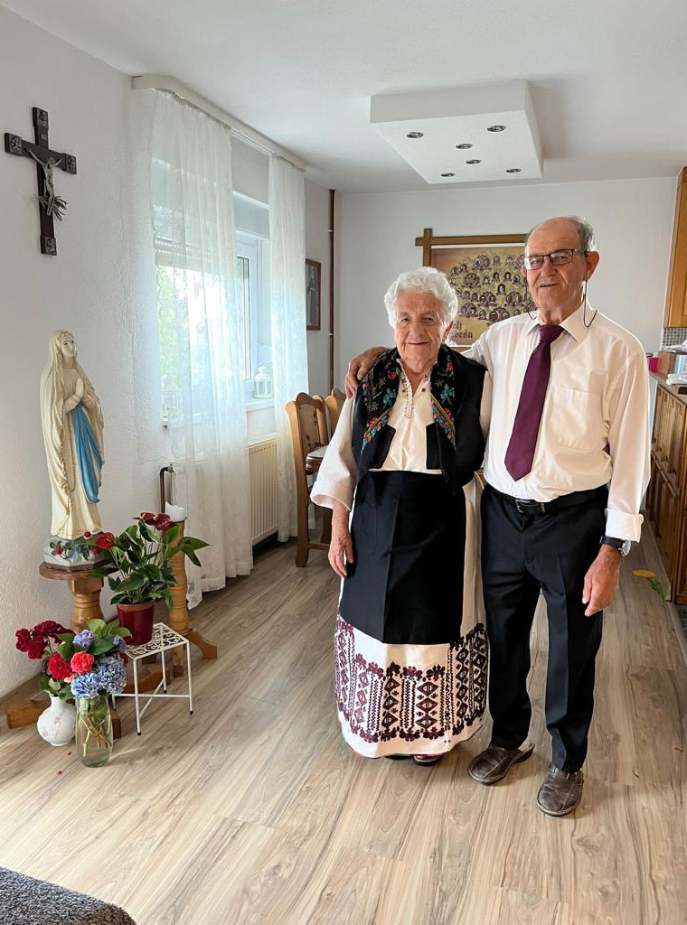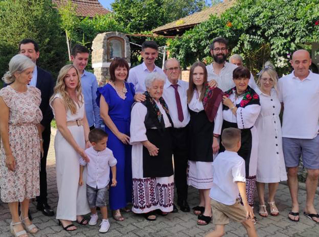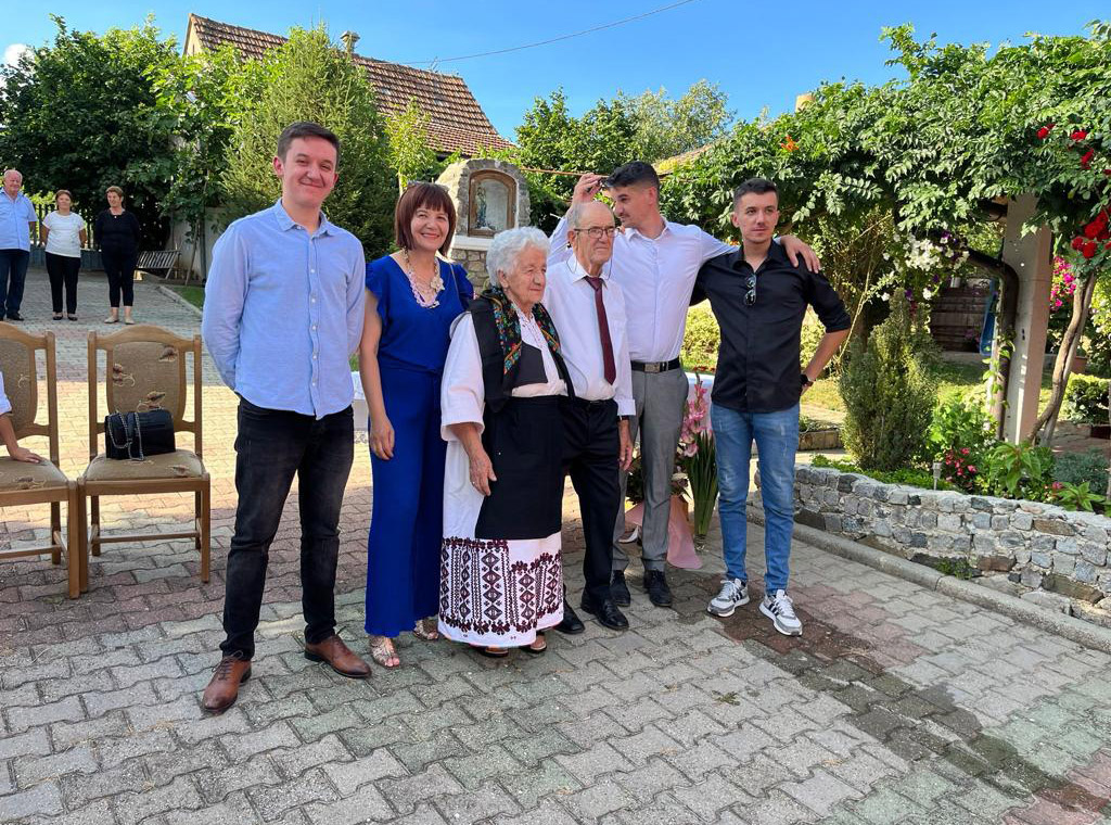 Tomislav i Ruža Grubeša proslavili su 9. srpnja dijamantni pir, točnije 60 godina braka. U dvorištu obiteljske kuće u selu Borinci kod Vinkovaca održano je euharistijsko slavlje uz nazočnost njihove djece, unučadi te rodbine i prijatelja.