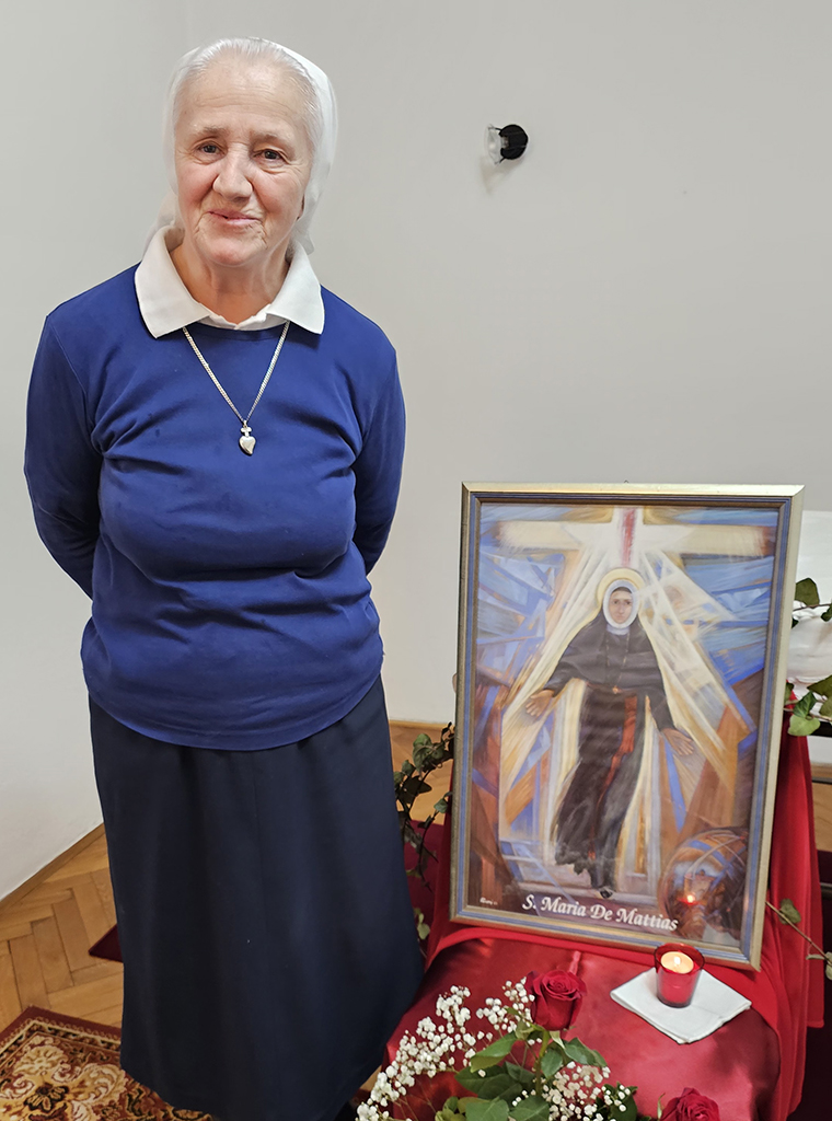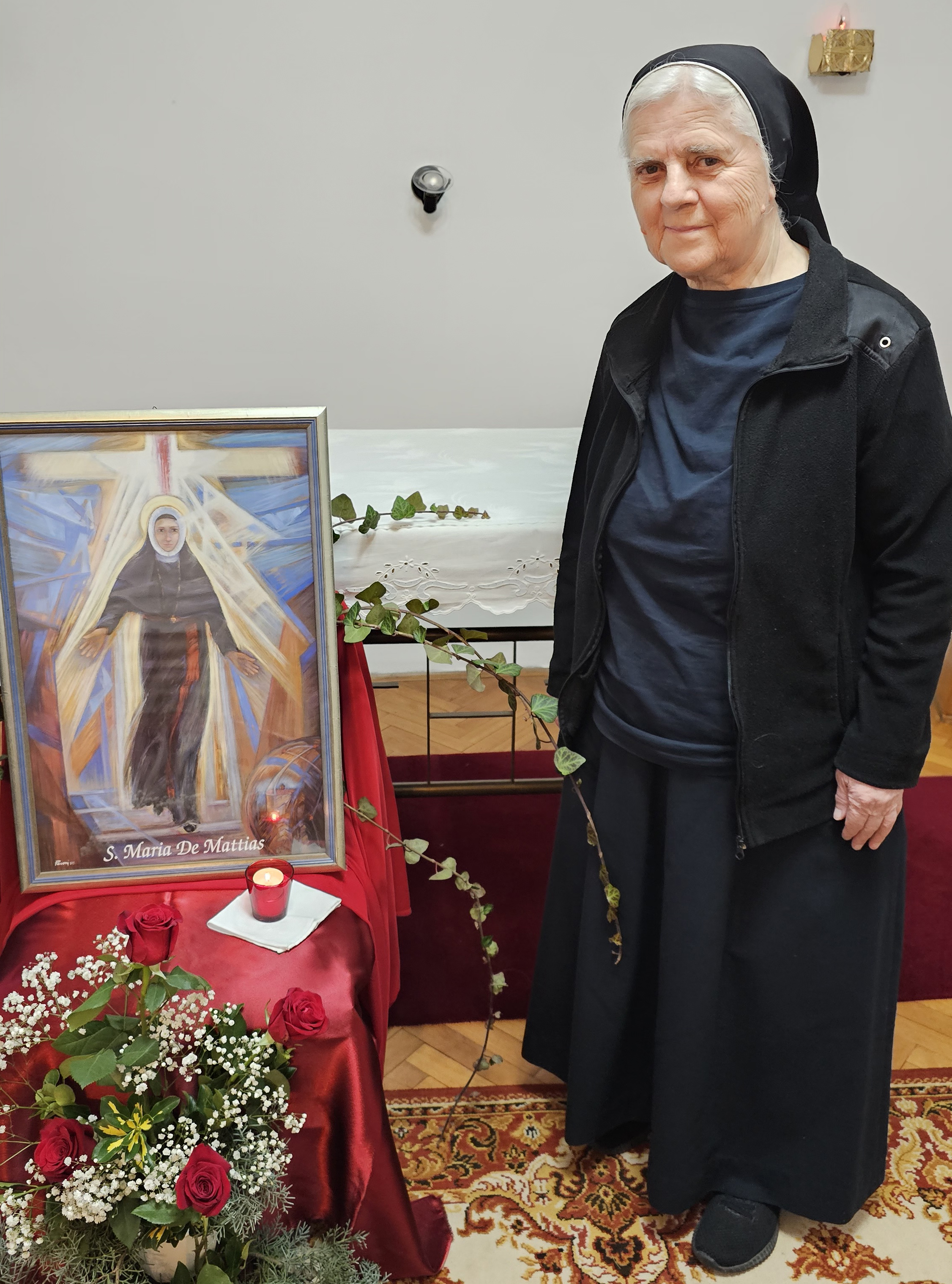 Inače, Družba sestara Klanjateljica Krvi Kristove osnovana je 1834. u Acutu (Italija). Povijest Družbe započinje s njezinom utemeljiteljicom Sv. Marijom De Mattias (1805. – 1866.). Prije dva stoljeća ona je krenula u veliku avanturu i ostvarivanje Božjeg djela proizašlog iz njezine duboke kontemplacije i uranjanja u otajstvo Krvi raspetoga Krista. I danas isti zanos, karizmu i duhovnost žive i utjelovljuju po svom apostolatu Klanjateljice širom svijeta.