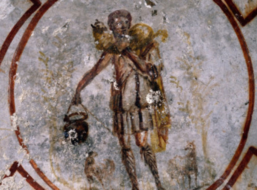 U vrijeme kada je bilo zabranjeno stvarati eksplicitno kršćansku umjetnost kršćani su se „snašli“ i oslikali katakombe u kojima su se skrivali tijekom bogoslužja. Njihova umjetnost koju su za sobom ostavili služi nam kao prozor u njihovu vjeru. Tako je na zidovima katakombi Sv. Kalista nekada u trećem stoljeću oslikan Isus koji nosi janje preko svojih ramena.