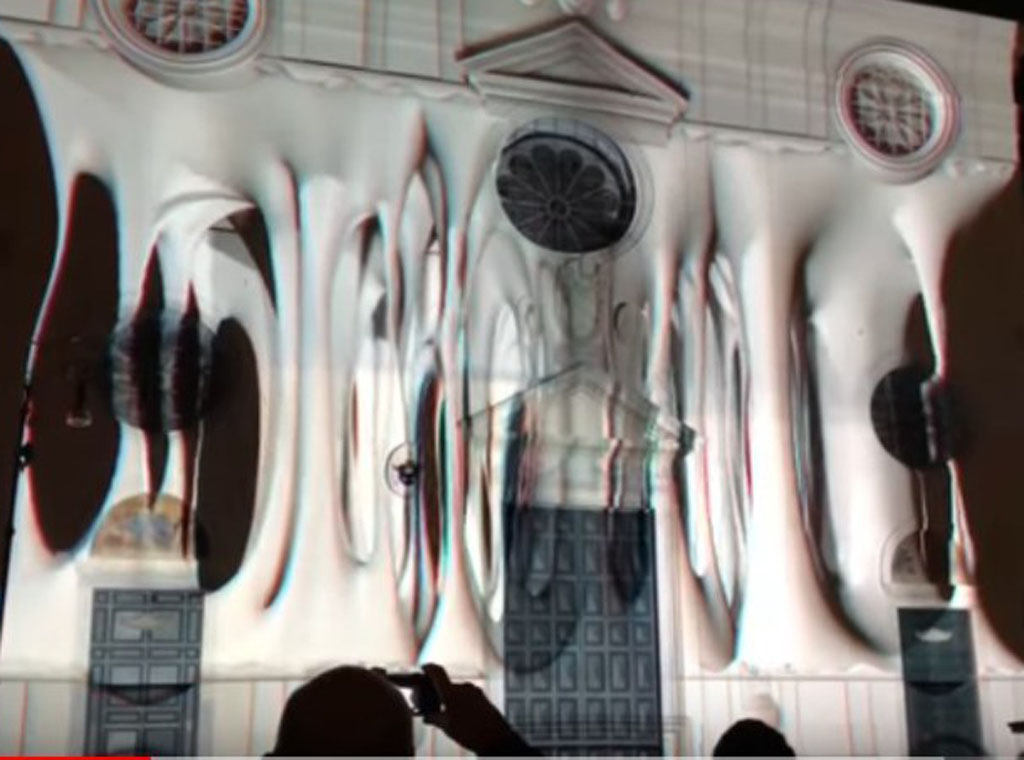 Umjesto toga, scene projicirane na novoobnovljenom pročelju Santa Maria Sopra Minerva predstavljale su urušavanja ili eksplozije crkava, pulsirajućih sfera i psihodeličnih tunela koji vode u ponor.