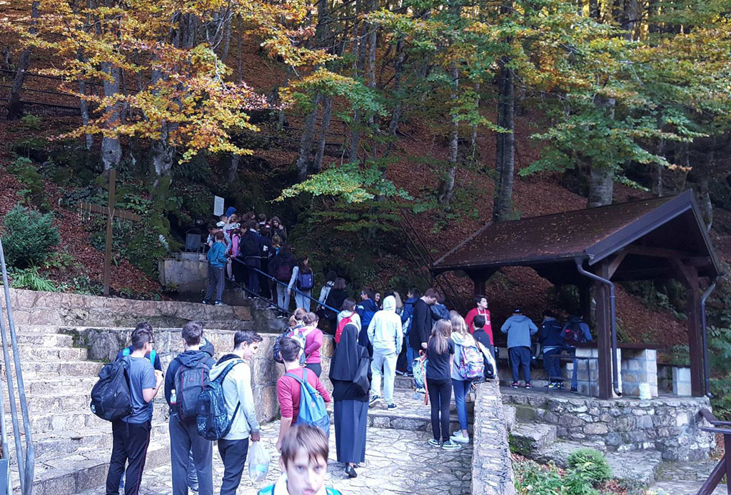 Župnik Marić je učenicima i njihovima nastavnicama predstavio iscrpni životopis velikoga talijanskog svetca, ukazavši na važnost Jakovljeve vode i špilje. Nakon polusatnog boravka u svetištu, druge odredište bila je punionica vode Nevra, koja se nalazi tik uz svetište.