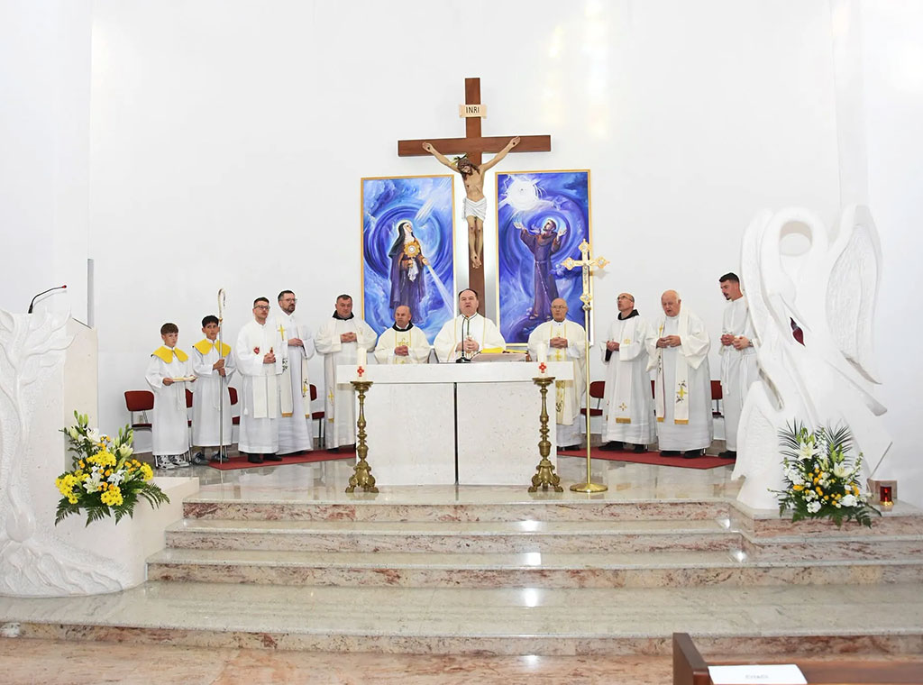 Na početku je biskup Petar izrazio radost zbog okupljanja i prigode blagoslova oltara i vitraja. „Lijepo je da se u ovoj jubilarnoj godini, kada se spominjemo 800. obljetnice smrti Sv. Franje, kome je ova crkva posvećena, odnosno u njoj se posebno štuje i slavi Sv. Franjo Asiški, da se i na ovaj način zaokružuje uređenje ove crkve. Svi ste vi ovo pomogli, na neizravan način sudjelovali u ostvarenju i na taj način ste pokazali svoju ljubav i uljepšali sveti prostor u kojem se okupljate i gdje slušate Božju riječ, slavite otajstva… Kada god jednu ovakvu građevinu darujemo Bogu ili namjenjujemo za bogoštovlje, nije to samo dovršetak građevinskog projekta, nego je to i svojevrsni čin vjere. Ovaj čin pokazuje što nosimo u svome srcu i što osjećamo“, poručio je mons. Palić.
