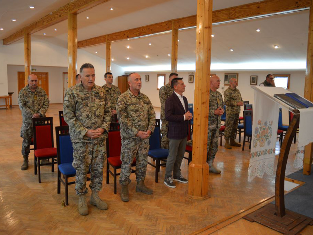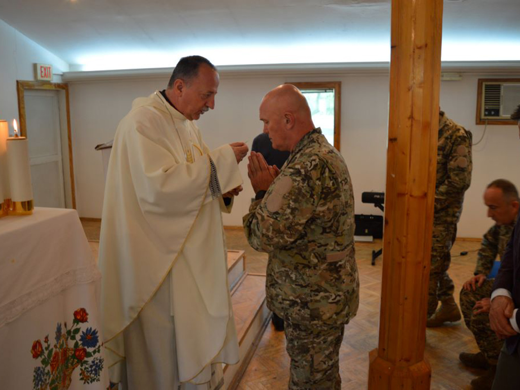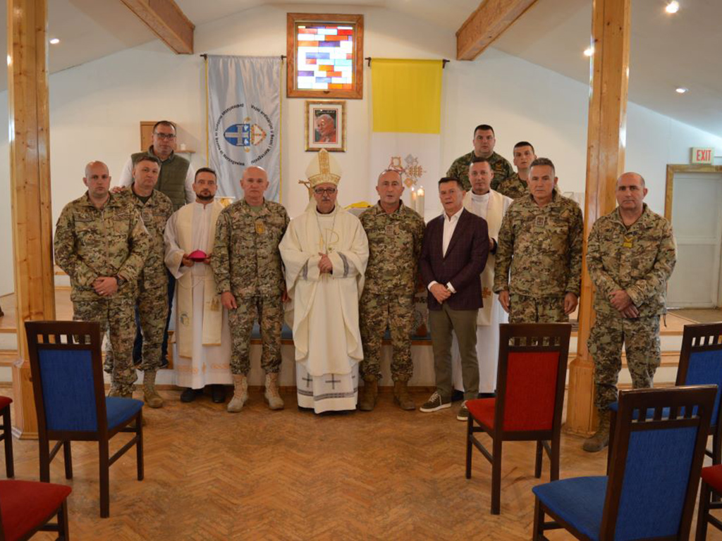 Kapelan don Ljubo je uime vojnika, dočasnika i časnika, zajedno s pukovnikom Ilijom Mikićem, poželio dobrodošlicu biskupu.