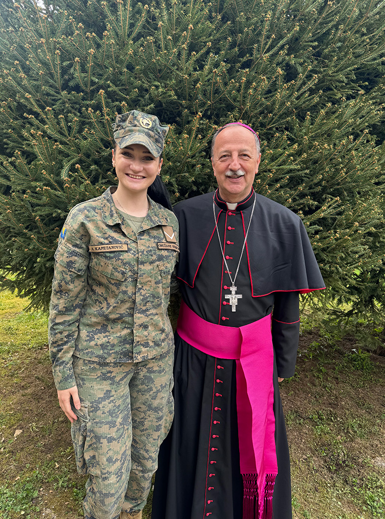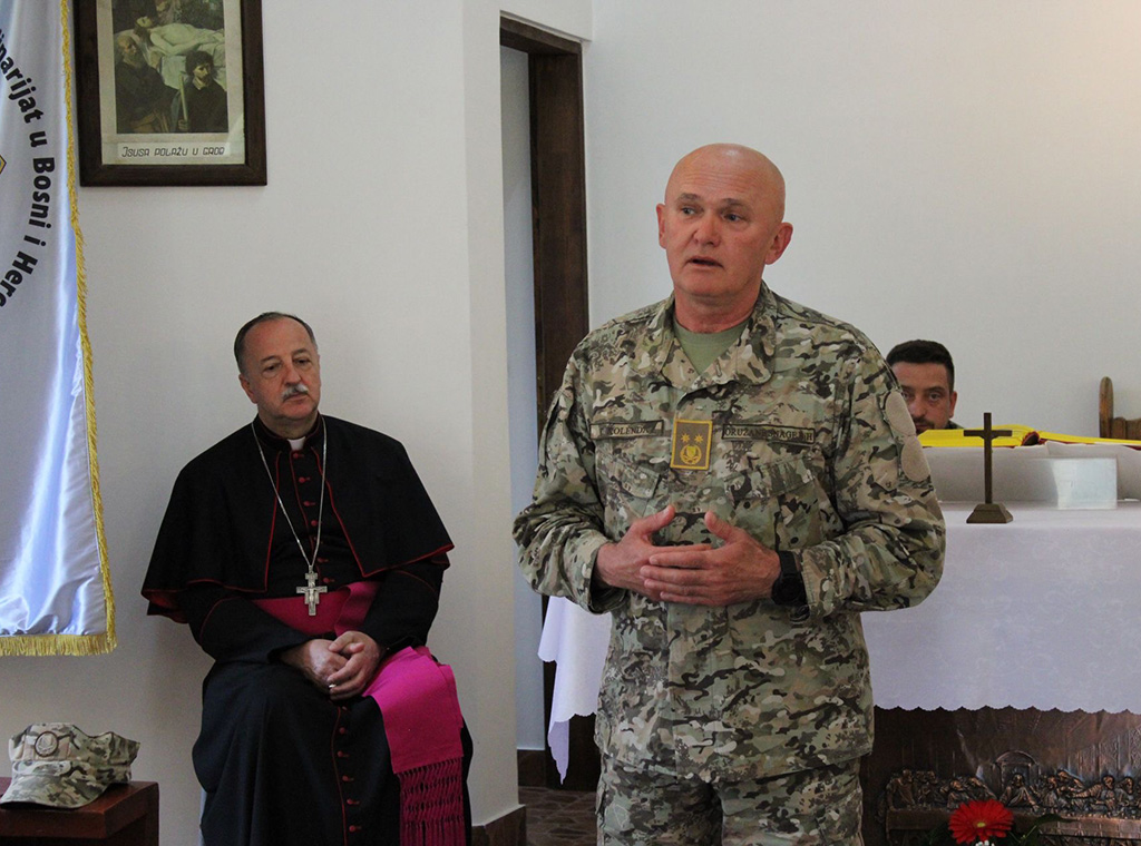 Vojni je biskup bio u pratnji generalnog vikara Vojnog ordinarijata u BiH mons. Željka Čuturića, kancelara preč. Josipa Tadića i general-bojnika Tome Kolende.