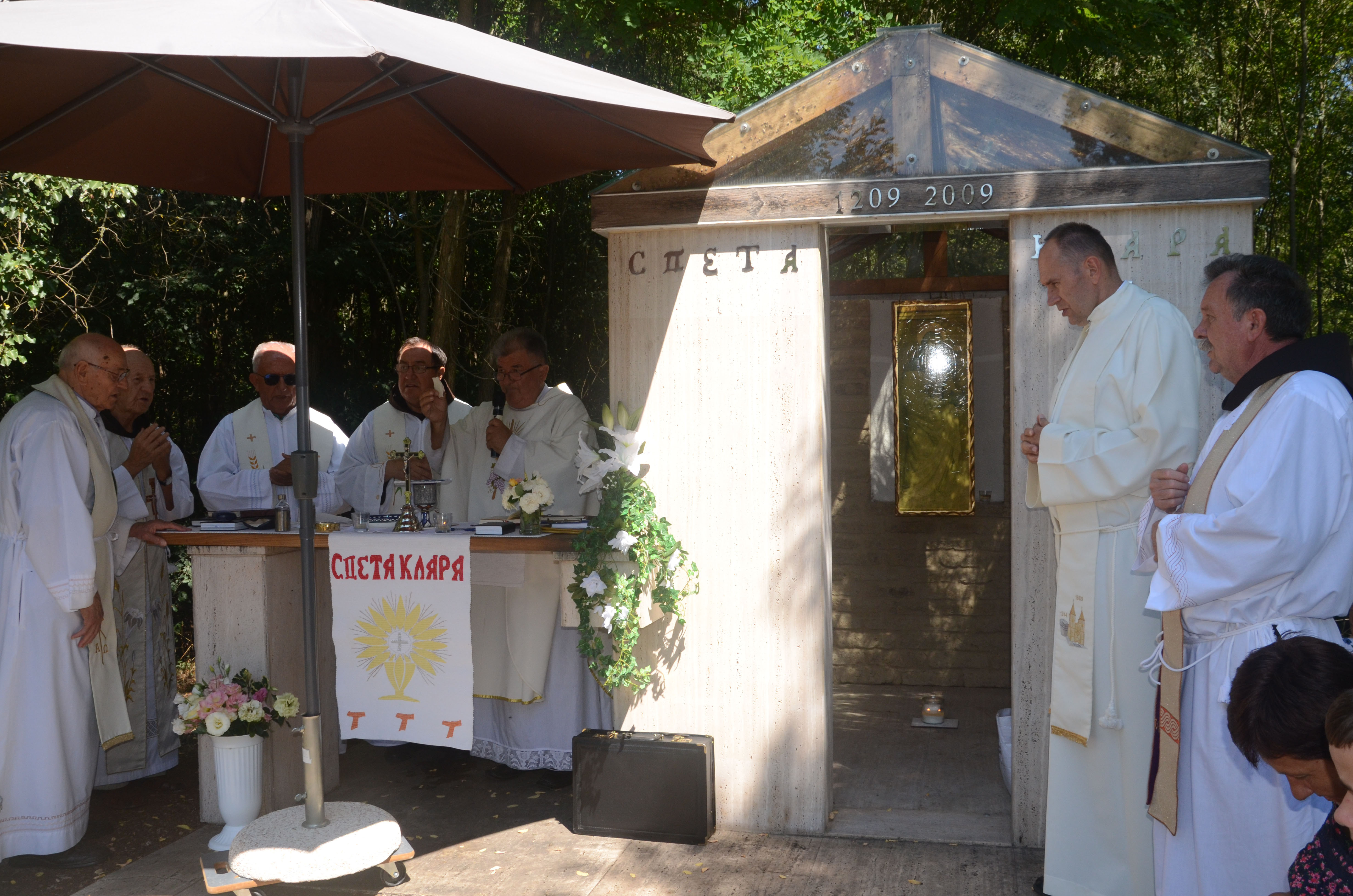 Župnik fra Mladen zahvalio je vjernicima što su i ove godine došli u to malo svetište slaviti Boga i moliti zagovor Sv. Klare u svom životu. On je na početku mise predvodio tradicionalni obred blagoslova polja. Slavlje je i ove godine nastavljeno uz druženje i okrjepu, koju su u svome dvorištu za sve pripremili bračni par Lekić.