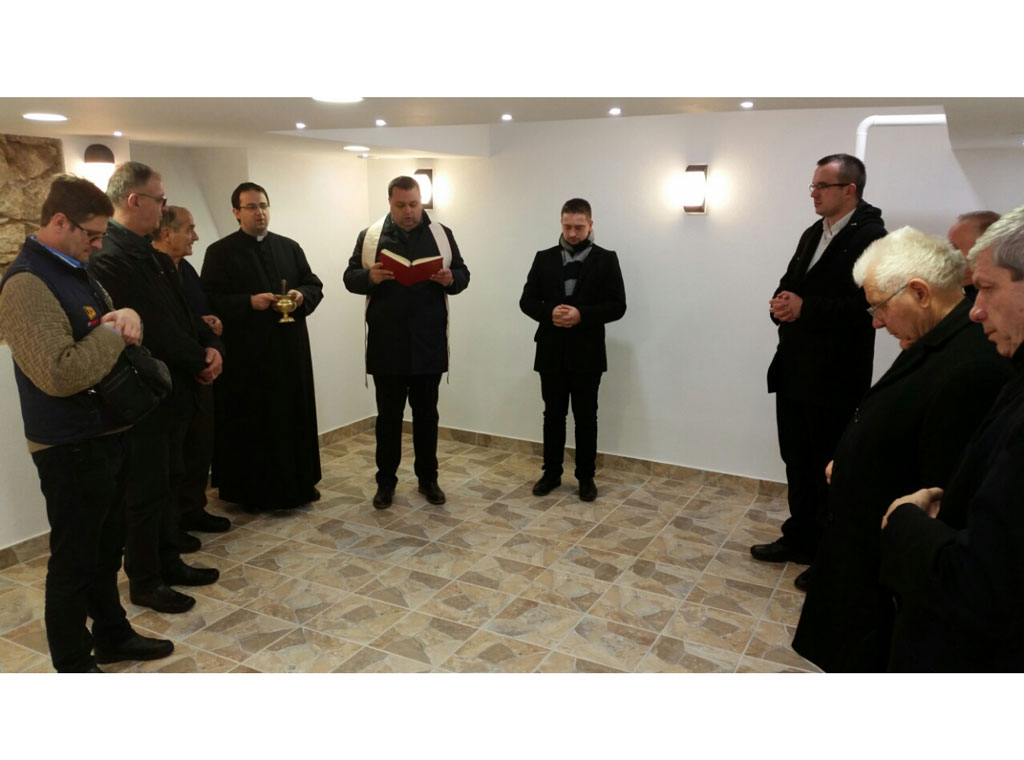 U nazočnosti 10-ak svećenika blagoslov dvorane u podrumskim prostorima, obavio je preč. Mladen Kalfić, kancelar Vrhbosanske nadbiskupije.