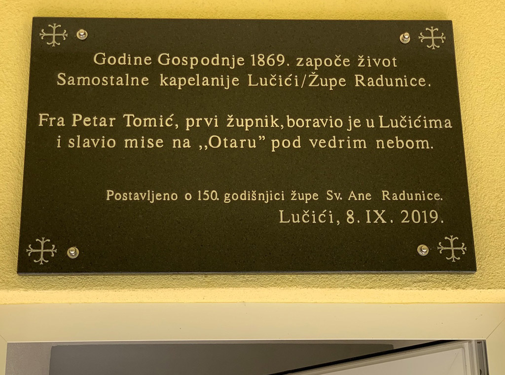 U subotu, 5. rujna, u popodnevnim satima kod kapelice Male Gospe u Lučićima, koja se nalazi u župi Sv. Ane u Radunicama, djeca i mladi su izmolili krunicu, a potom je upriličeno misno slavlje.