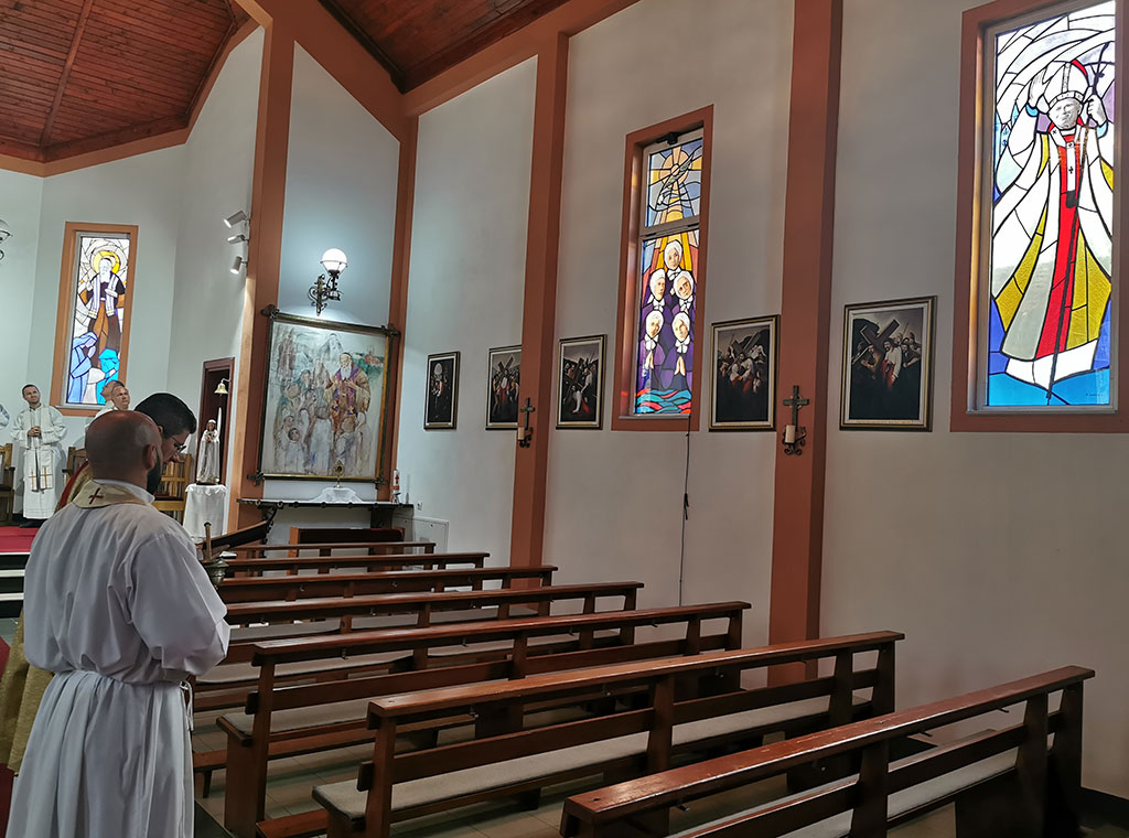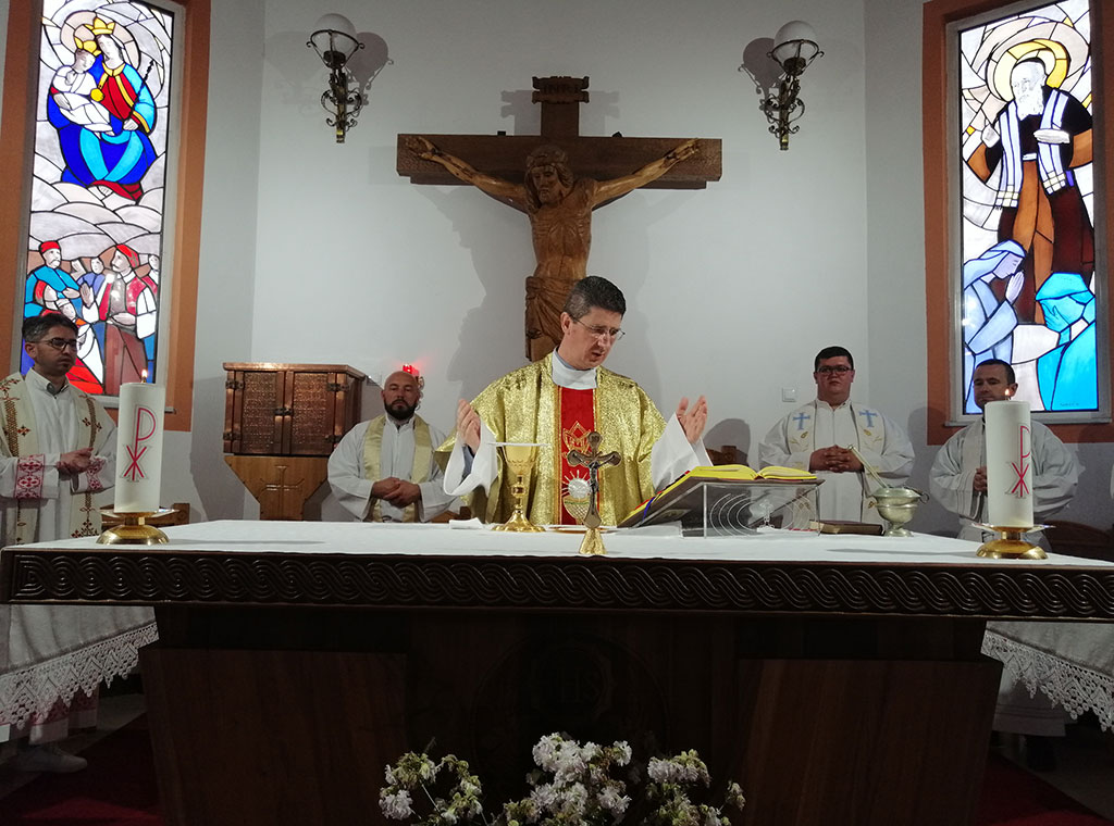 Nakon popričesne molitve generalni vikar je blagoslovio vitraje: Bl. Drinskih mučenica, Sv. Ivana Pavla II. i Bl. Ivana Merza.