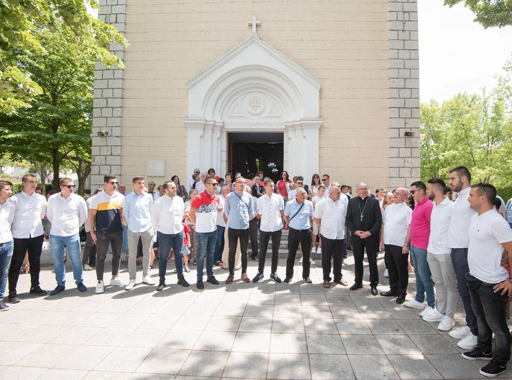 Nazočne je na početku pozdravio stolački župnik te se podsjetio svoje mlade mise prije 43 godine kada je biskup Štironja, tadašnji sjemeništarac, bio aktivno uključen u organizaciju njegova mladomisničkog slavlja. Potom su mladi biskupu predali umjetničku sliku akademskog slikara Mišela Stojanovića Radimlja.