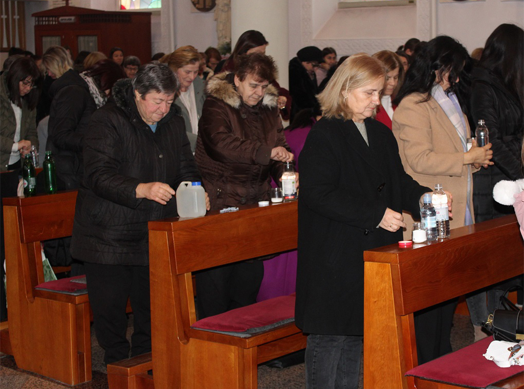 Euharistijsko slavlje predvodio je vlč. Josip Papak, domaći sin, koji je na početku obavio obred blagoslova vode i soli.