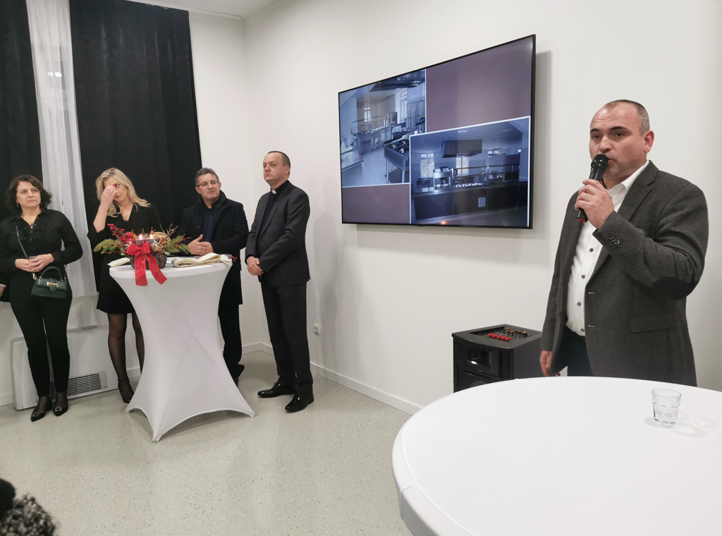 Uslijedio je blagoslov prostorija koji je ujedno i bio božićni blagoslov nazočnih, a obavio ga je dekan Sarajevskog dekanata preč. Miroslav Ćavar, župnik na Stupu, na čijem se teritoriju nalazi Dom.