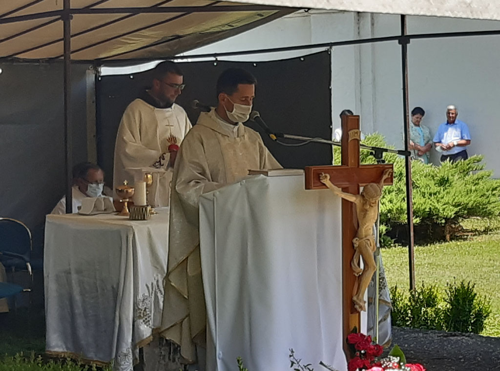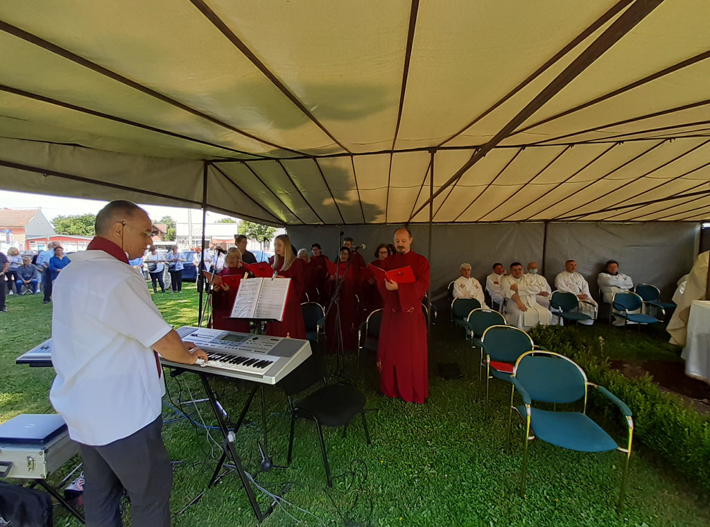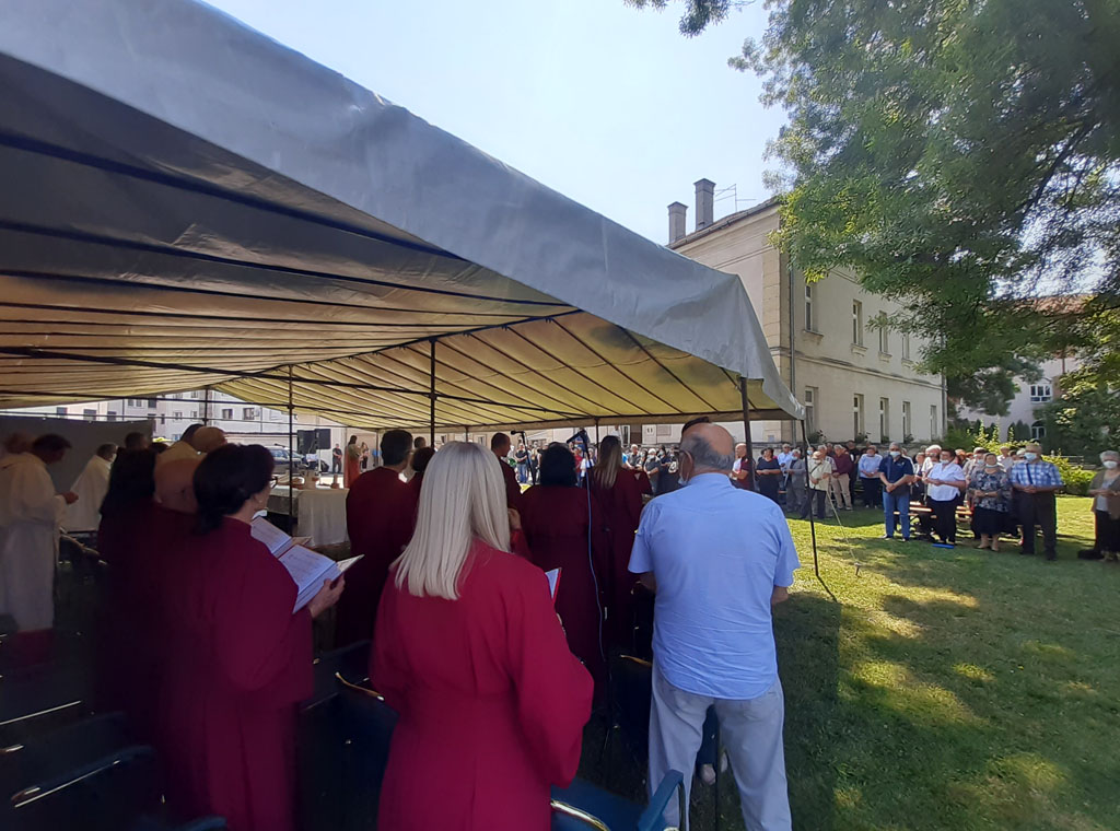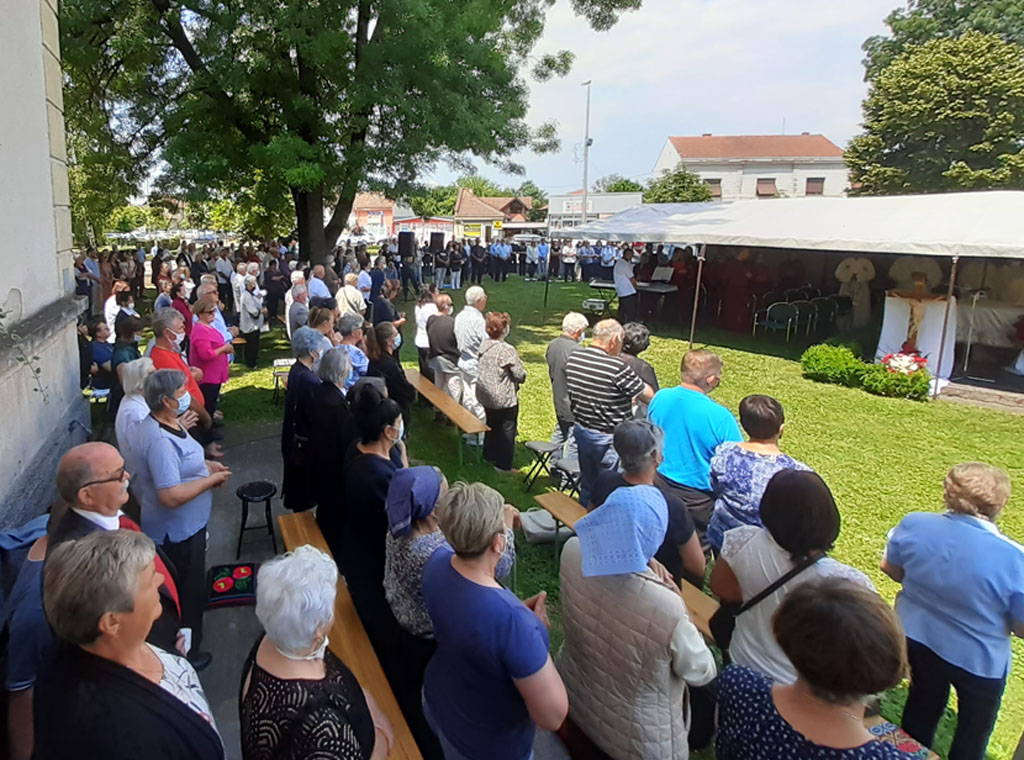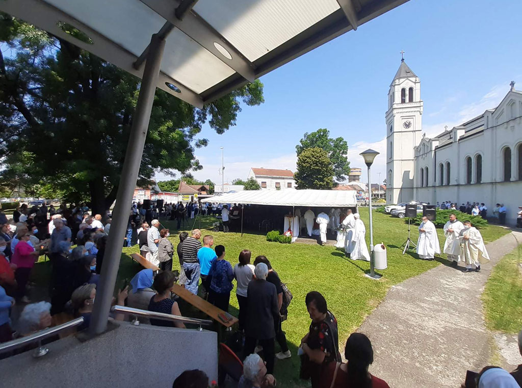 Euharistiju je animirao župni zbor Presvetog Srca Isusova, a nazočilo je oko 250 vjernika koji su "spas" od jakog sunca za vrijeme mise pronašli u hladovini župnog dvorišta.
