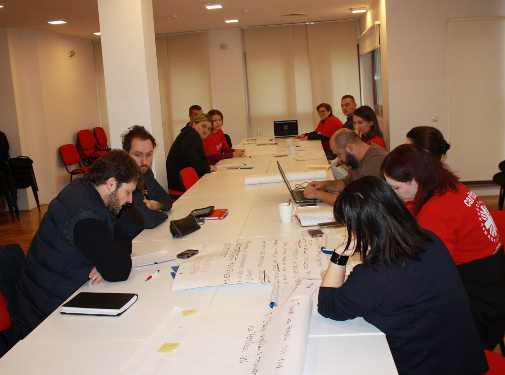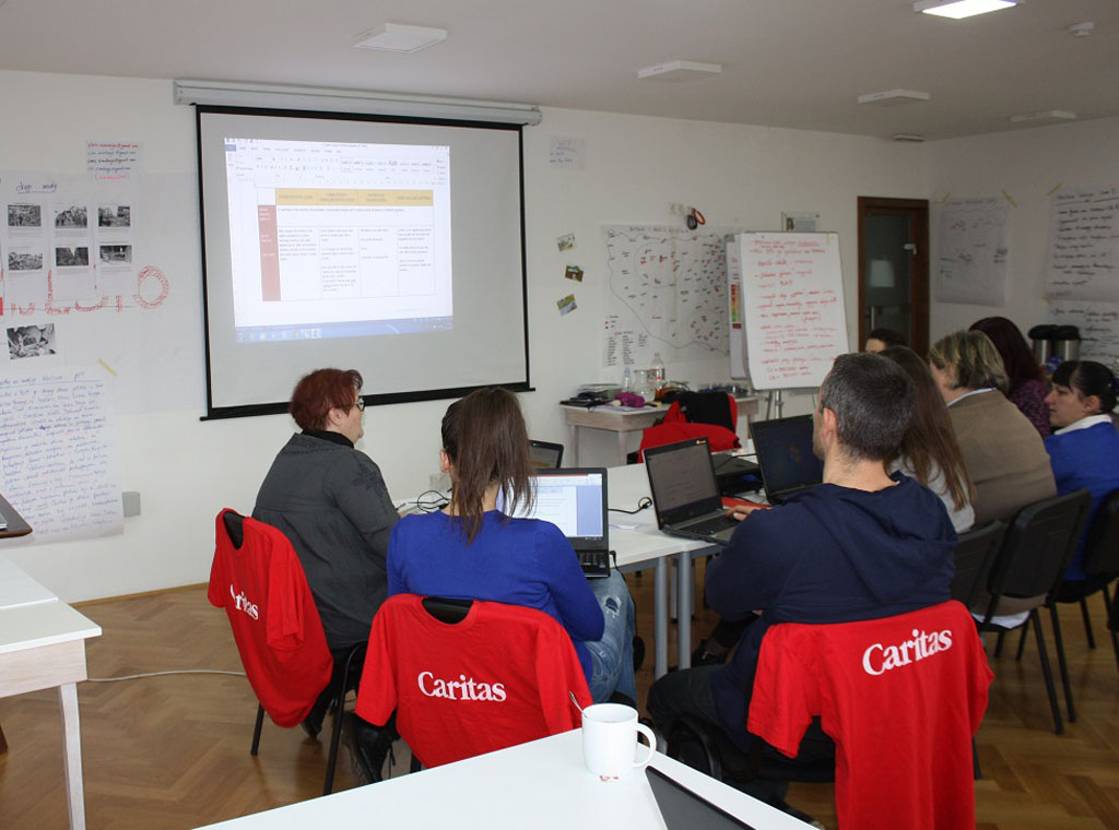 Simulacijska vježba započela je kratkim poludnevnim treningom o mehanizmu koordinacije Caritasa Europe i Caritasa Internacionalis. Na treningu pored djelatnika Caritasa u Bosni i Hercegovini sudjelovali su i djelatnici CRS-a. Nakon treninga simulacijska vježba je službeno započela. Svi djelatnici su se uživjeli u svoje uloge, radeći prema naputcima svojih ravnatelja, a koristeći se pređašnjim iskustvima, naučenim lekcijama kroz rad na poplavama, i znanjima koje su stekli tijekom dvogodišnjeg programa na ovu temu.