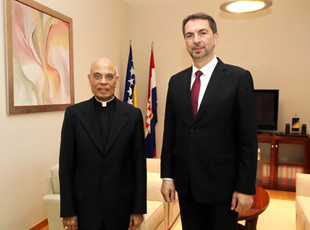 Tijekom susreta bilo je riječi i o odnosima Svete Stolice i Bosne i Hercegovine, s posebnim osvrtom na provođenje Osnovnog ugovora između Svete Stolice i BiH, saopćenje iz Kabineta predsjedavajućeg Predstavničkog doma.