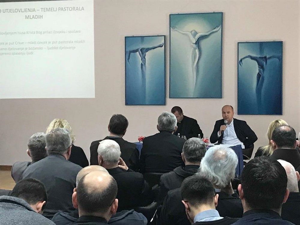 Fra Antonio Šakota, duhovni asistent Franjevačke mladeži u Hercegovini, održao je na početku susreta uvodnu prezentaciju na temu Crkva uoči sinode za mlade, a uslijedilo je predavanje vlč. dr. Šime Maršića, ravnatelja Nadbiskupijskog centra za pastoral mladih (NCM) Ivan Pavao II., na temu Načelo utjelovljenja kao temelj pastorala mladih.