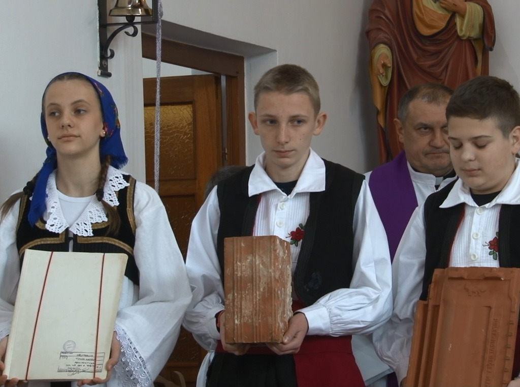 Mladi su župljani u narodnim nošnjama tijekom prinosa darova pred oltar donijeli ciglu, crijep i projekt crkve, kao i matice rođenih, krizmanih, vjenčanih i umrlih. Pored toga, zahvalili su i Bogu na svim svećenicima, posebice pokojnom vlč. Boži Markotiću, koji je u ratnim nedaćama budio nadu u opstanak i svoj život ugradio u ovu zajednicu.