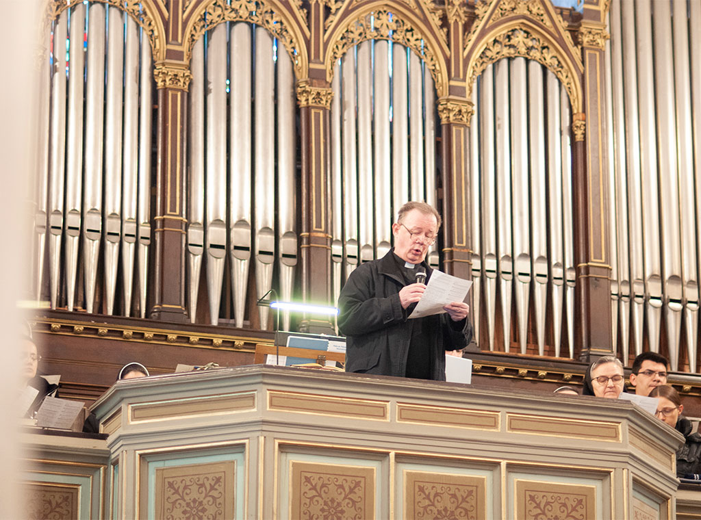 Nakon misnih čitanja, u navještaju Muke Gospodnje po Luki ulogu Isusa imao je kanonik i profesor na sarajevskom KBF-u mons. Pavo Jurišić, narator je bio župni vikar katedralne župe vlč. Dino Mustafi, a druge uloge bile su dodijeljene članovima Katedralnog zbora Josip Stadler iz Sarajeva.