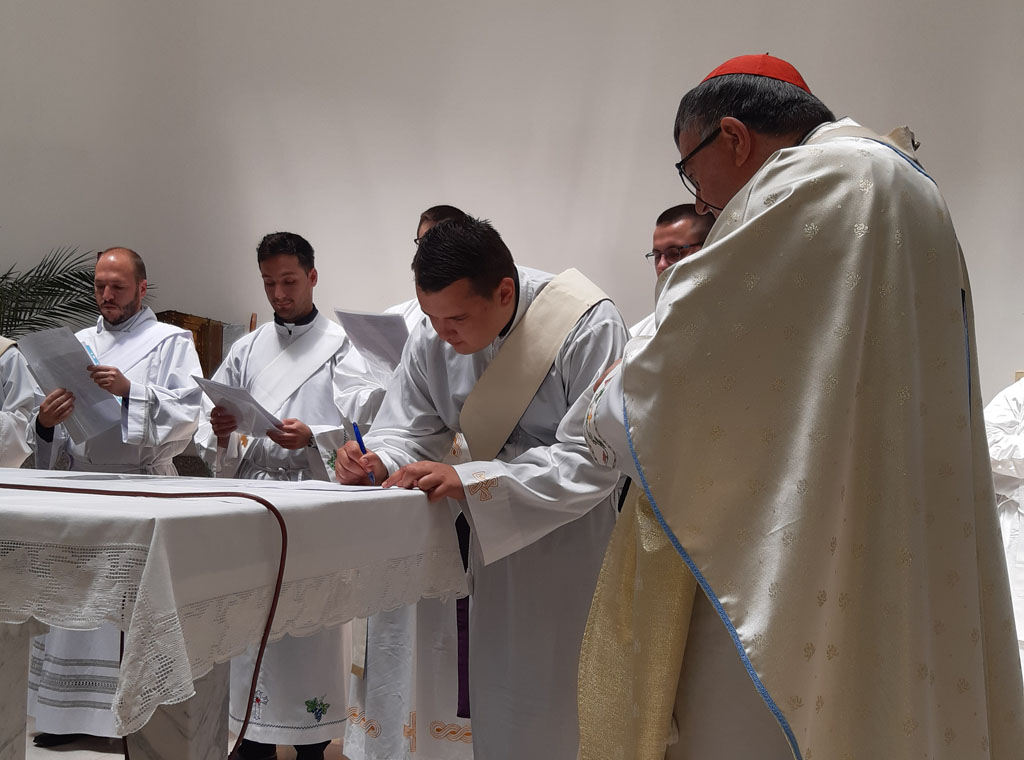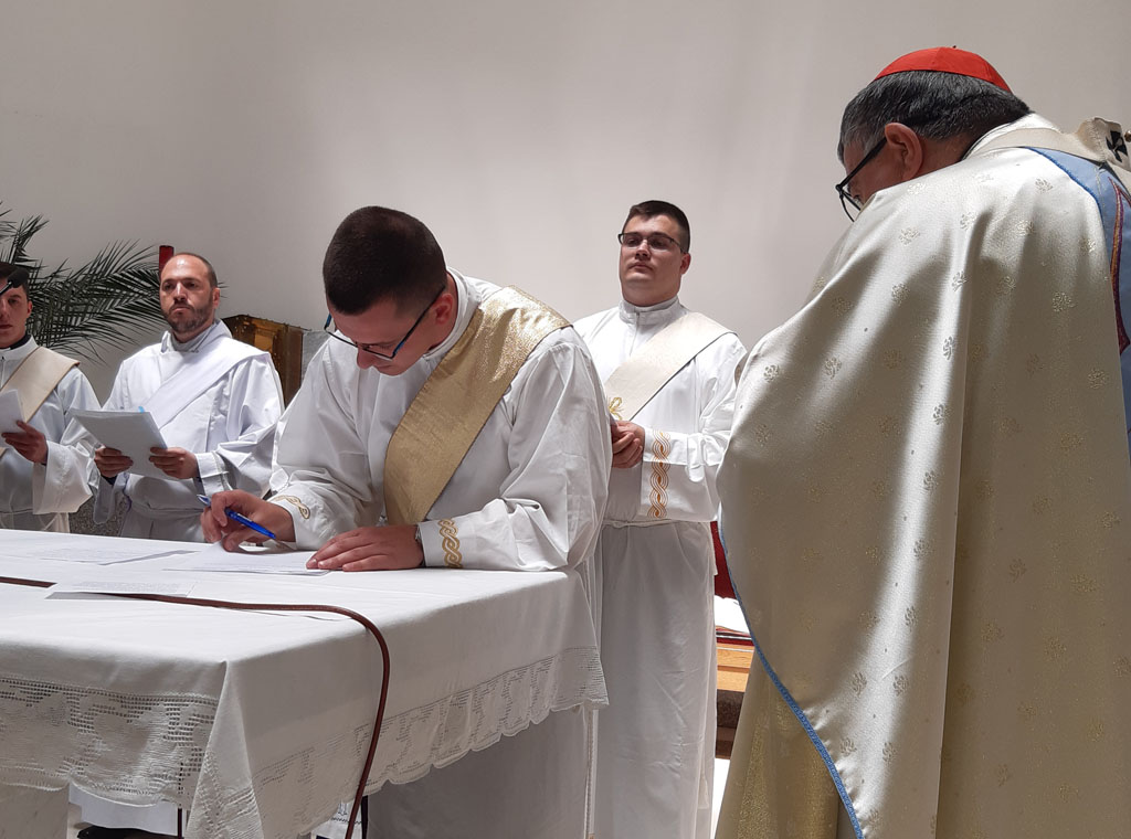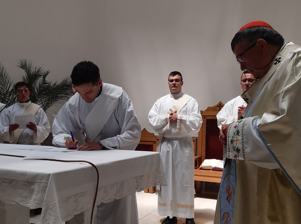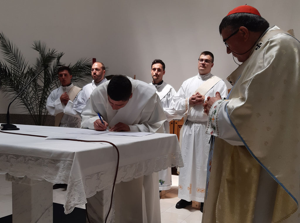 Za vrijeme mise u župnoj crkvi Uznesenja Blažene Djevice Marije u Komušini, 25. lipnja, koju je predslavio vrhbosanski nadbiskup metropolita Vinko kard. Puljić sedam đakona ove mjesne Crkve potpisali su dokumente za primanje svetog reda svećeništva.
