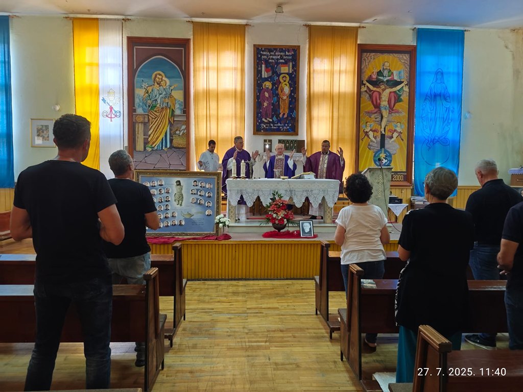Svetu misu u molitvenom prostoru predvodio je generalni vikar Banjolučke biskupije mons. dr. Karlo Višaticki, uz koncelebraciju župnik domaćina don Davora Klečine i župnika u Banjoj Luci vlč. Žarka Vladislava Ošapa.