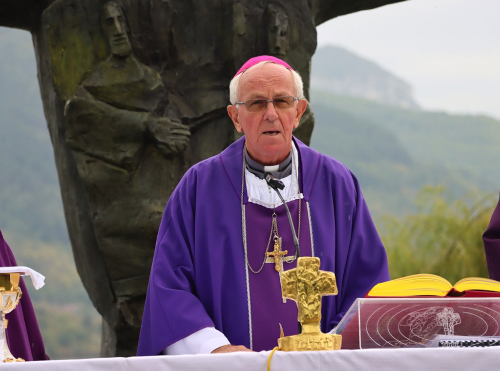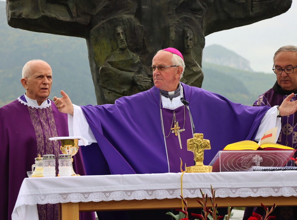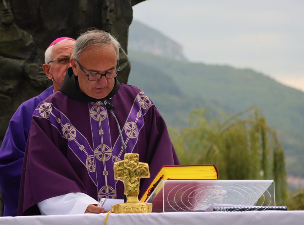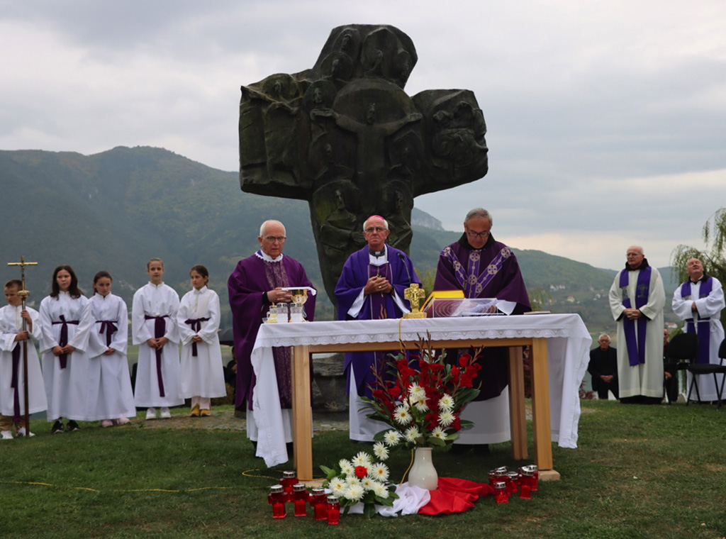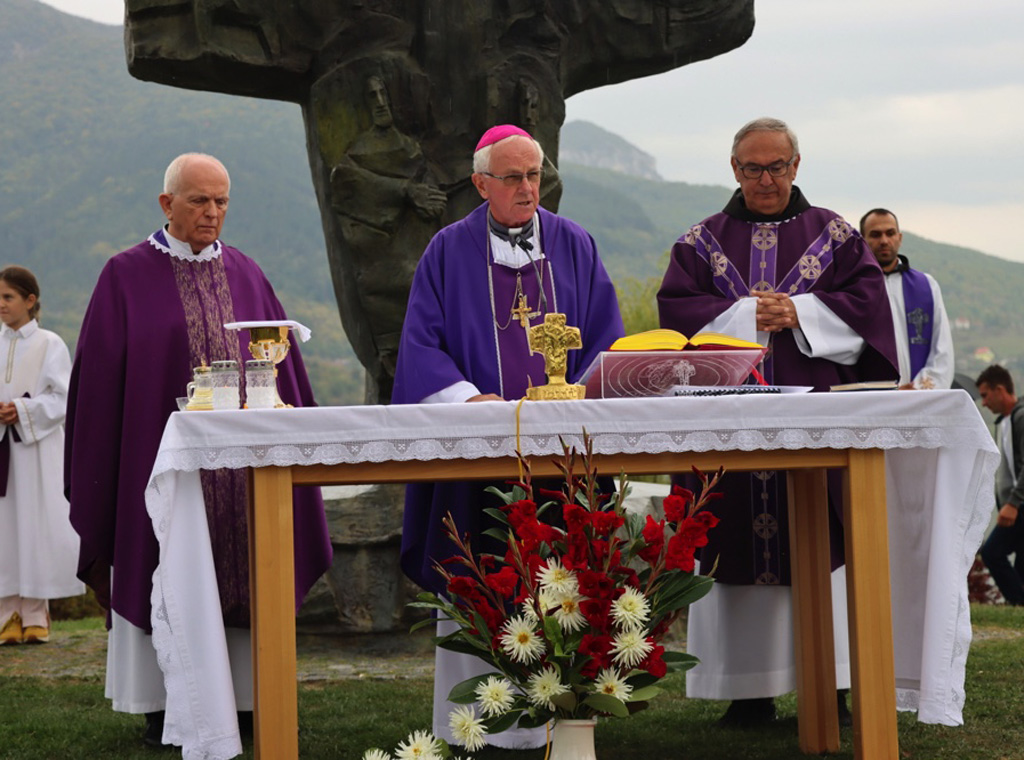 U prigodnoj homiliji mons. Sudar istaknuo je kako je lijepo kada se jedna vjernička zajednica sjeća svojih preminulih, a posebice onih koji su iz mržnje prerano završili ovozemaljski život. Zapitao je pritom kakav je odnos vjernika prema zemnim ostatcima predaka po grobljima, a "čije duše čvrsto vjerujemo nalaze se u onoj vrsti života koji je odgovor na sva pitanja ovoga ovdje života". Istaknuo je da na misi, slučajno ili ne, sudjeluje skupina Talijana te podsjetio kako je toga kobnoga nadnevka u borbama živote izgubio i veliki broj vojnika iz Italije. Nadalje je promišljajući o patnji ovoga kraja istaknuo kako je i selo odakle je on rodom u isto vrijeme pretrpjelo razaranja. Posvijestio je kako je kroz povijest skoro svaki narod, u jednom trenutku, imao sličnu sudbinu istaknuo je kako nema odgovora na izvor takve ljudske patnje. "Zato su ljudi oduvijek podizali pogled u Nebo i postavljali pitanja čemu sve to", kazao je te dodao kako zločin ne može biti kraj jer na kraju vremena stoji Bog.