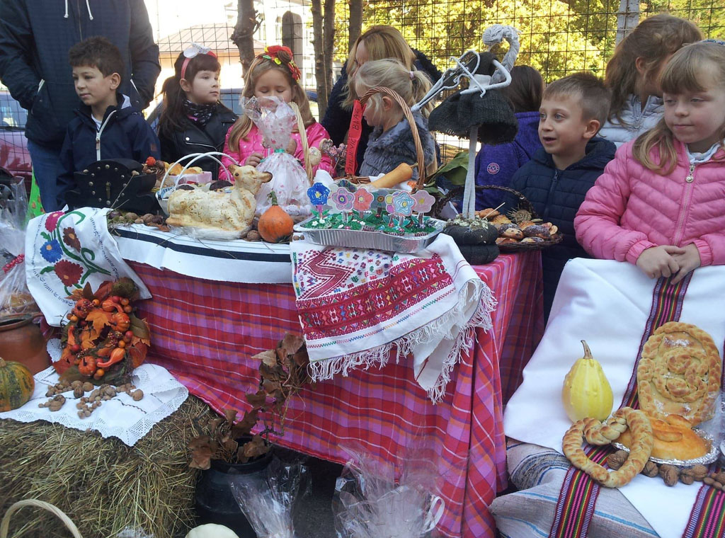 Učenički štandovi s pecivima bili su ukrašeni tradicijskim predmetima kao što su heklani stolnjaci, starinski mlinovi za kavu, priborom za pređu vune, zatim lijepim dekoracijama od jesenskog voća, slame i slično...U ponudi je bilo i domaće rakije i čaja.