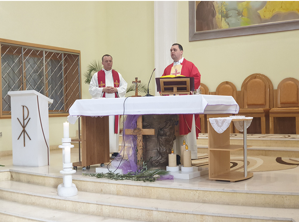 Vrhunac dana bilo je slavljenje sv. mise u samostanskoj crkvi sestara karmelićanki u Azićima koju je predslavio kancelar Kalfić uz koncelebraciju župnika Ćavara. Nakon naviještene Muke predvoditelj je u prigodnoj propovijedi progovorio o otajstvu koje se taj dan slavi te je poručio: „Krist nam je preko svoga križa pokazao koliko nas voli, a preko naših križeva uči nas ljubiti druge.“