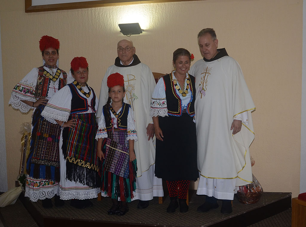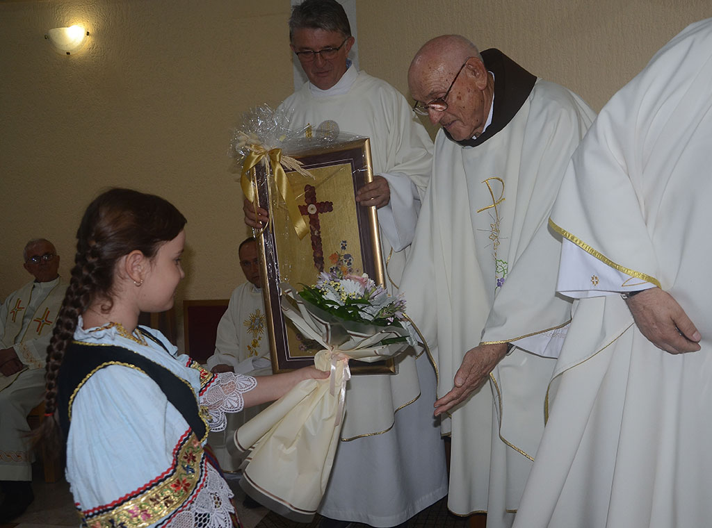Prigodne darove uime župe slavljeniku i provincijalu uz pjesmu uručili su župljani odjeveni u narodne nošnje.
