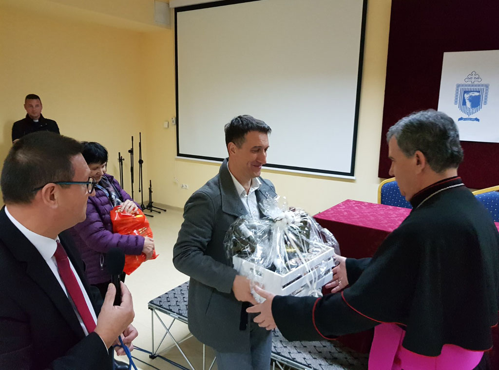 Nakon euharistije u velikoj sali Svećeničkog doma, koja se nalazi tik do sjemenišne crkve, upriličeno je prigodno druženje i razgovor za vrijeme kojeg su gosti iz Hercegovine darovali nadbiskupa Vukšića.