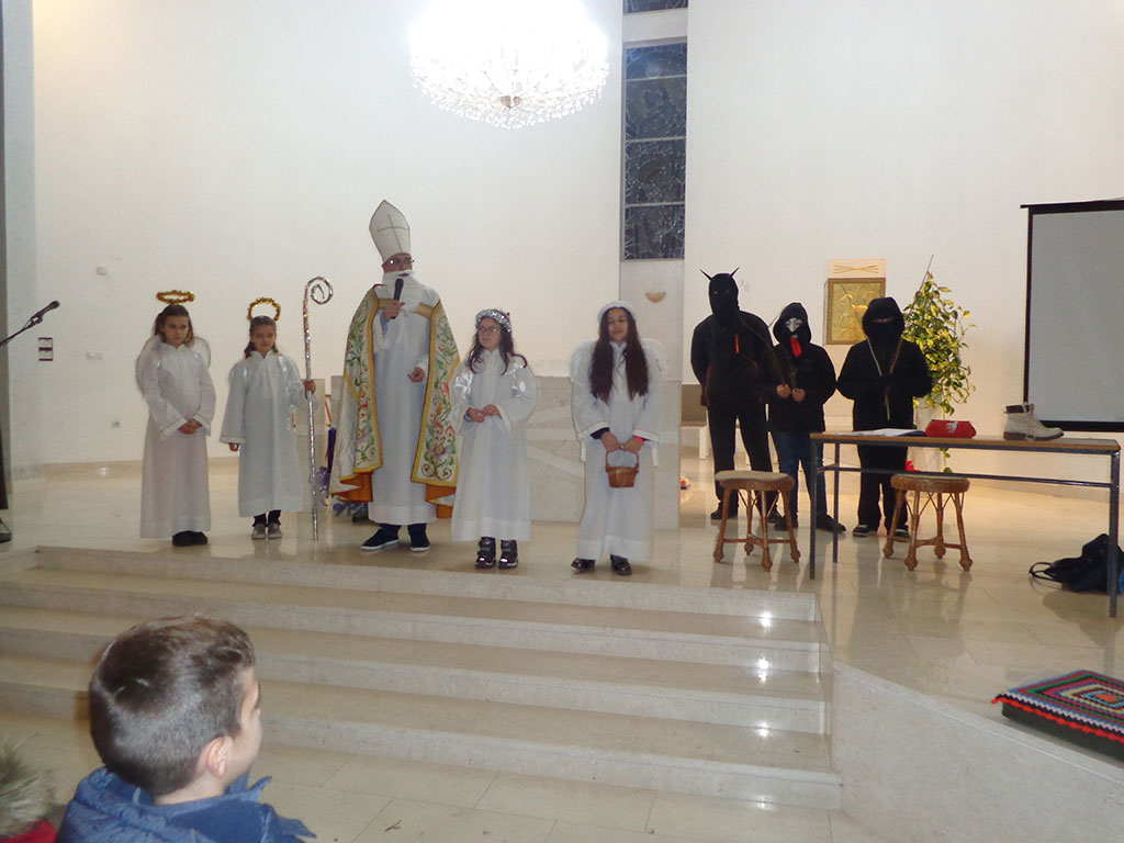 Framaši i ministranti još ljepše su dočarali današnji blagdan poučnim igrokazom Pospanac piše svetom Nikoli (autorice s. Ane Čajko Šešerko, iz knjige Bog daruje, čovjek otkriva, Mali Koncil, studeni 2017., str. 32.) u izvedbi ministrantica Katarine i Veronike Koturić.