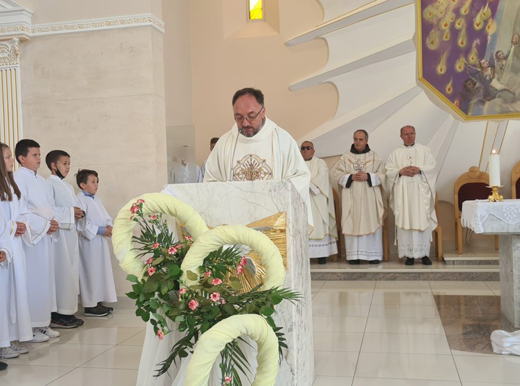Sveto misno slavlje u župnoj crkvi predslavio je karmelićanin dr. o. Zvonko Martić u koncelebraciji desetak prezbitera. Nazočne vjernike i svećenike kao i sve one koji su misu pratili putem Facebook profila portala centralna.ba na početku je pozdravio župnik don Anto Ledić.