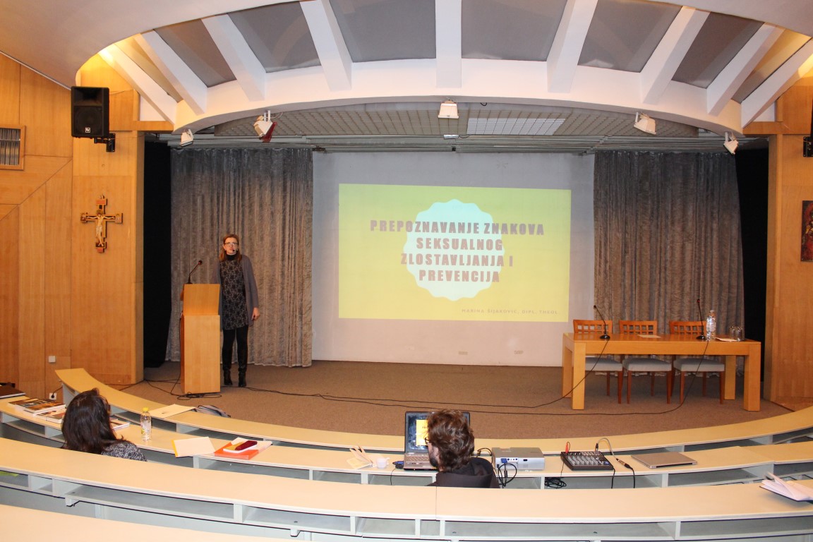 Drugo predavanje na temu Prepoznavanje znakova seksualnog zlostavljanja i prevencija održala je Marina Šijaković,(dipl.theol.) vjeroučiteljicai stručna suradnica u trajnoj formaciji svećenika po pitanju zaštiti djece u đakovačko-osječkoj nadbiskupiji. Teologinja Šijaković, koja je završila edukaciju u Centra za zaštitu maloljetnika pri Papinskom sveučilištu Gregoriana u Rimu, kroz svoje predavanje obradila je nekoliko cjelina, osvrnuvši se posebno na dvije razine individualnu i društvenu, koje pokazuju kako i zašto dolazi do zlostavljanja.Kršćanstvo ne samo da prepoznaje dostojanstvo svakoga čovjeka, uključujući maloljetnike, nego na posebno mjesto stavlja djecu, naglasila je teologinja Šijaković, pozivajući se na svetopisamski tekst: "Pustite dječicu i ne priječite im k meni jer takvih je kraljevstvo nebesko!" (Mt 19, 14.)