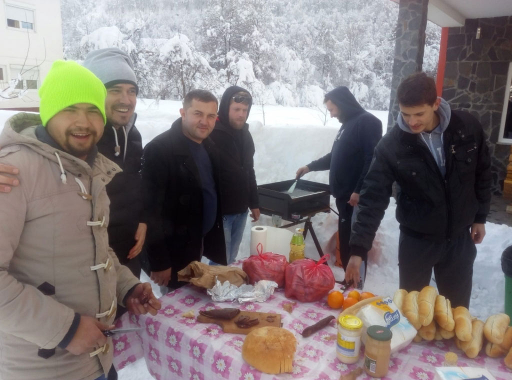 U sklopu druženja, od snijega je očišćen plato ispred crkve i spomen obilježje u izgradnji. Nakon čišćenja i kićenja, upriličeno je druženje uz kuhano vino, mezu i fritule.