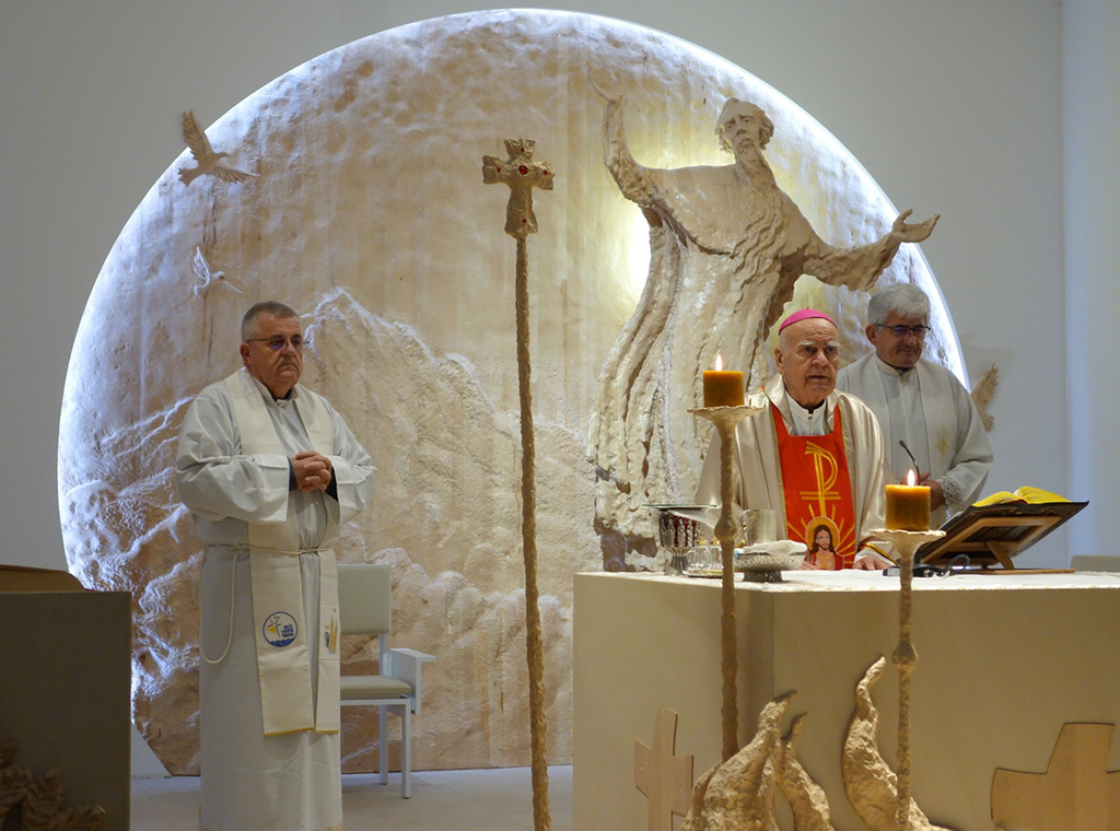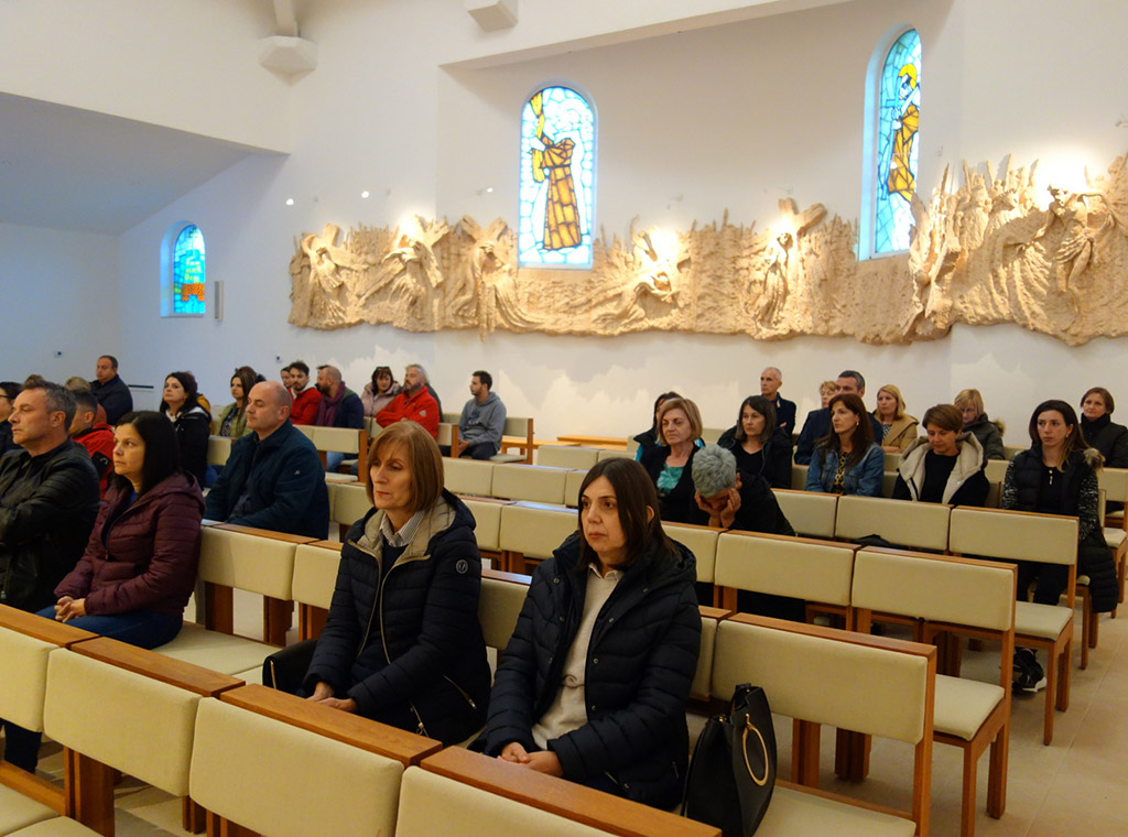 Vrhunac duhovni vježbi bilo je radosno i bogato euharistijsko slavlje s narodom u novouređenoj samostanskoj crkvi koje su, uz predsjedanje biskupa Ratka i koncelebraciju nazočnih ravnatelja i otaca karmelićana, animirali djelatnici Caritasa svojom pjesmom i pratnjom na gitarama.