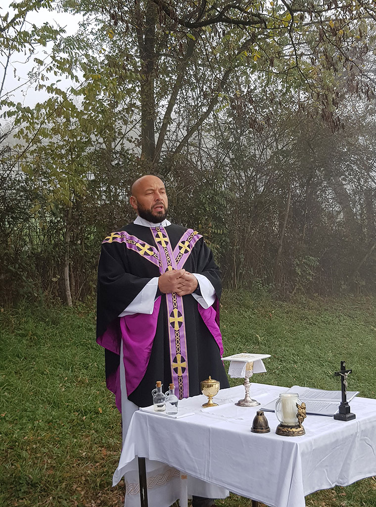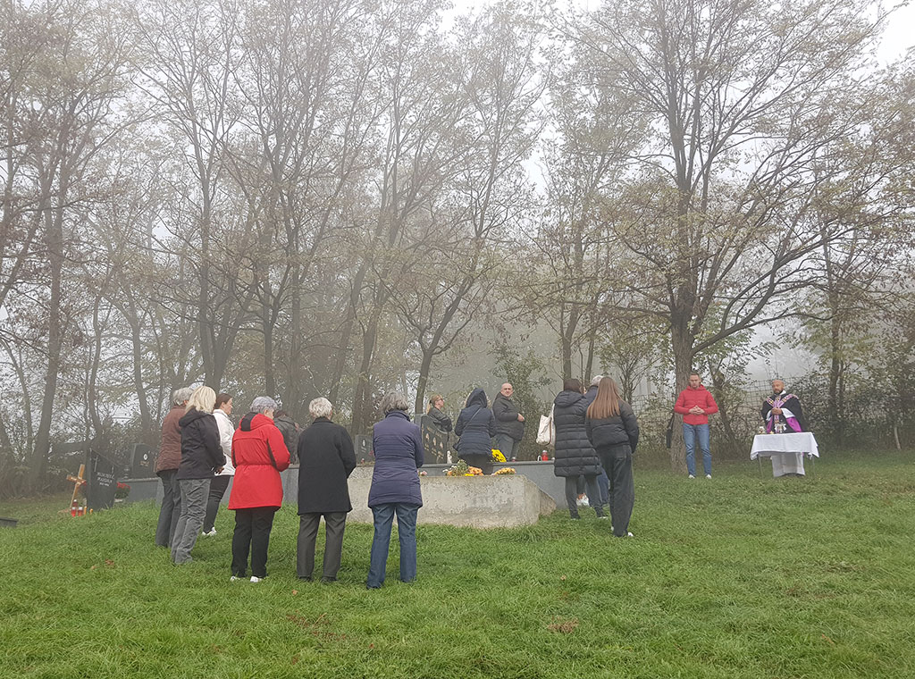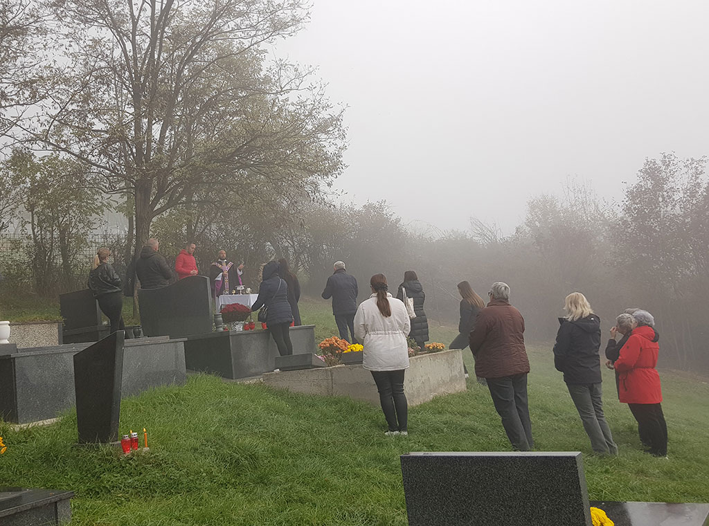 Misno slavlje uz sudjelovanje 20-ak vjernika, predslavio je župnik vlč. Josip Vajdner, urednik Katoličkog tjednika. Uvodeći u svetu misu podsjetio je kako se katolici kao dio „putujuće Crkve“, na Svisvete utječu zagovoru svih (ne)znanih svetaca koji čine „proslavljenu Crkvu“, a na Dušni dan se spominju svojih pokojnih koji se nalaze u stanju čistilišta i dio su „trpeće Crkve“. U tom smislu potaknuo je na molitvu u ozračju kako su to činili i prvi kršćani okupljajući se na grobljima.