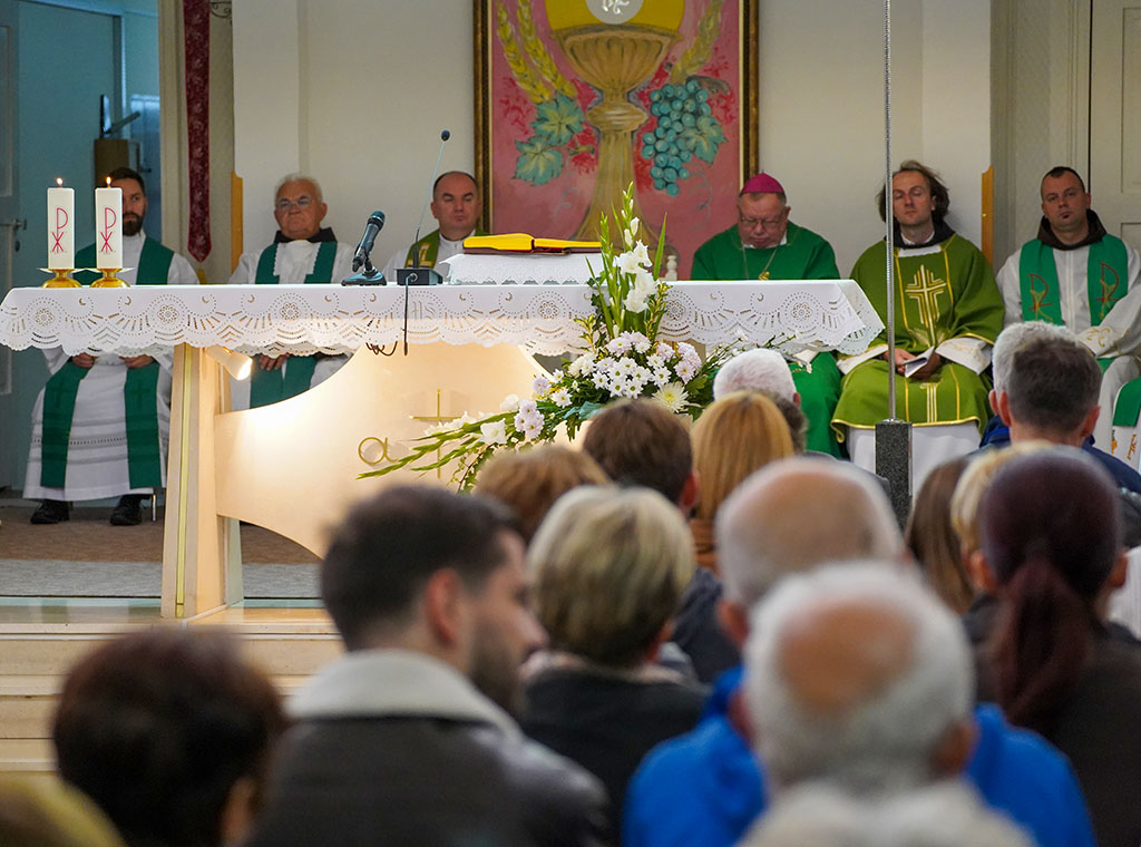 Euharistijsko slavlje predvodio je vrhbosanski nadbiskup metropolita mons. Tomo Vukšić, predsjednik Vijeća za sredstva društvenog priopćivanja BK-a BiH, uz suslavlje pomoćnog biskupa banjolučkog mons. Marka Semrena, generalnog tajnika BK BiH i glavnog urednika Katoličke tiskovne agencije mons. Ive Tomaševića, gvardijana Franjevačkog samostana Petrićevac fra Domagoja Šimića, glavnog urednika Naših ognjišta fra Gabriela Mioča, domaćeg župnika fra Ivana Tučića, župnog vikara fra Ivana Lovrića, župnika župe Zavalje i ravnatelja Katoličkog školskog centra Ivan Pavao II. u Bihaću vlč. Marka Crnjka te tajnika nadbiskupova vlč. Dine Mustafija.