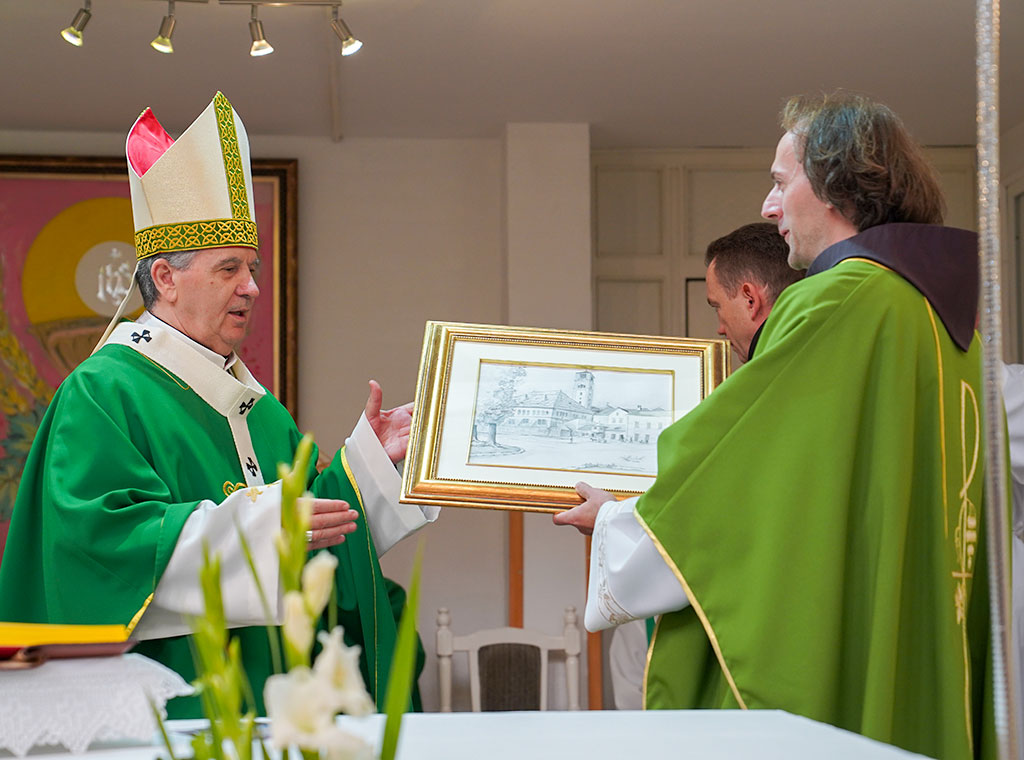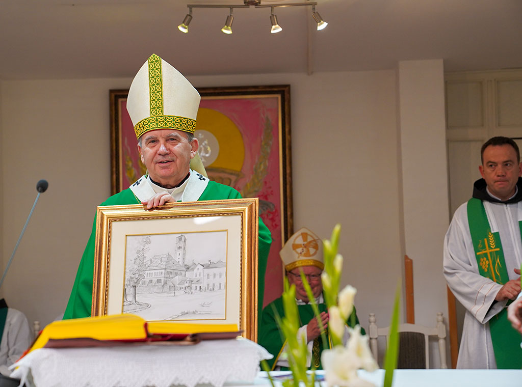 Potom je župnik mons. Vukšiću uručio prigodan dan u vidu umjetničke slike.