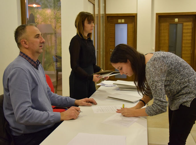 Na kraju se pristupilo potpisivanju Ugovora, a predsjednik upravnog vijeća FONSS-a Boris Babić je svakom stipendisti ponaosob čestitao, zaželjevši puno uspjeha na obostranu radost.