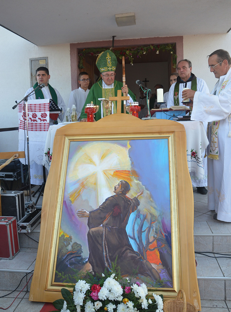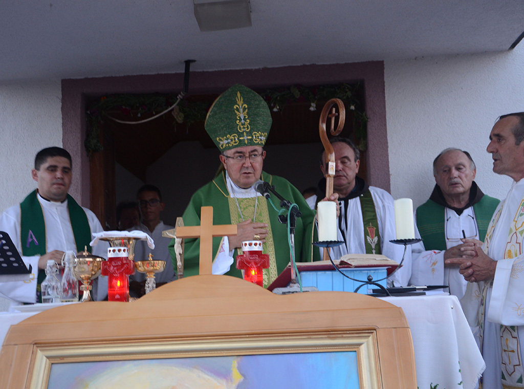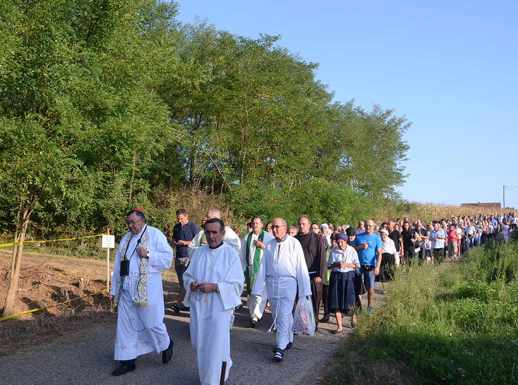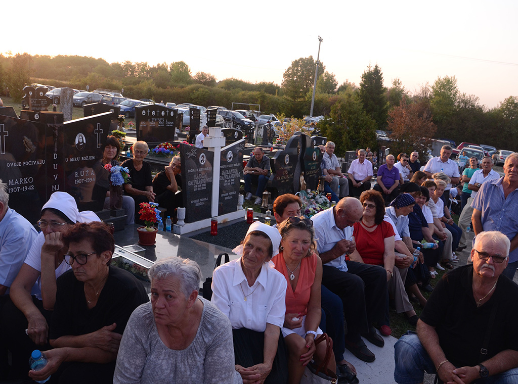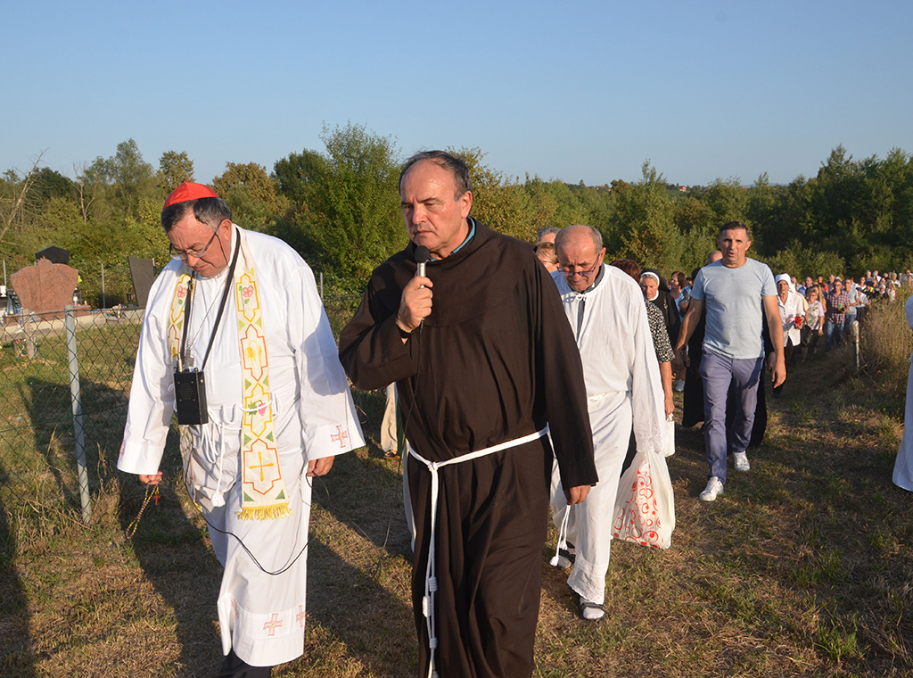 Kardinal je zajedno s vjernicima uz molitvu krunice u procesiji s fra Lovrinom slikom i svijećama kroz selo došao do groblja gdje je pokopan fra Lovro. Tu je u suslavlju s domaćim župnikom Ilijom Matanovićem, postulatorom kauze fra Marijanom Karaulom i još sedam okolnih svećenika predvodio misno slavlje.