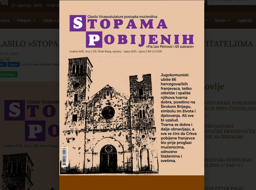 Nakon godinu dana izašao je novi, 33., broj glasila »Stopama pobijenih« kojega uređuje Vicepostulatura postupka mučeništva »fra Leo Petrović i 65 subraće« na čelu s vicepostulatorom fra Miljenkom Stojićem.