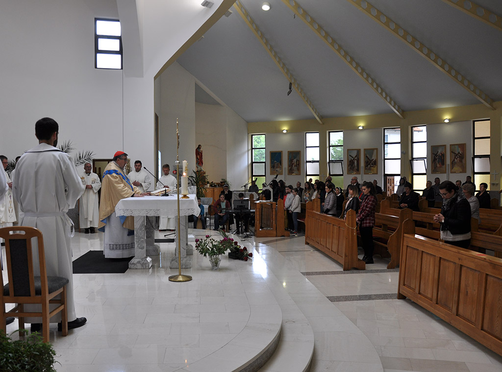 Nekoliko desetaka mladih Vrhbosanske nadbiskupije, većinom djelatnika ili suradnika Nadbiskupijskog centra za pastoral mladih Ivan Pavao II., proslavu Dana mladih uz druge vjernike, koliko je bilo dozvoljeno u skladu s mjerama borbe protiv koronavirusa, započelo je euharistijom koju je predslavio vrhbosanski nadbiskup metropolita Vinko kard. Puljić. Koncelebrirali su nadbiskup koadjutor i apostolski administrator Vojnog ordinarijata u BiH mons. Tomo Vukšić; župnik u Komušini i čuvar Gospina svetišta preč. Boris Salapić; ravnatelja NCM-a Ivan Pavao II. dr. vlč. Šimo Maršić te još desetak svećenika, uglavnom koji pastoralno djeluju u susjednim župama.