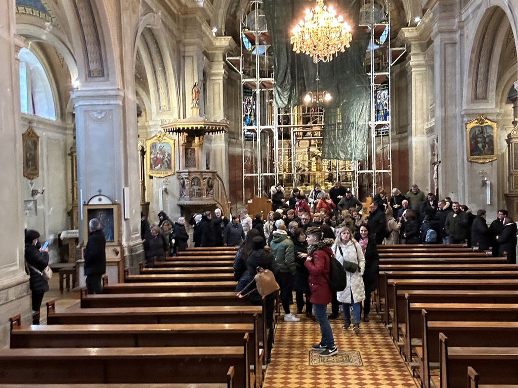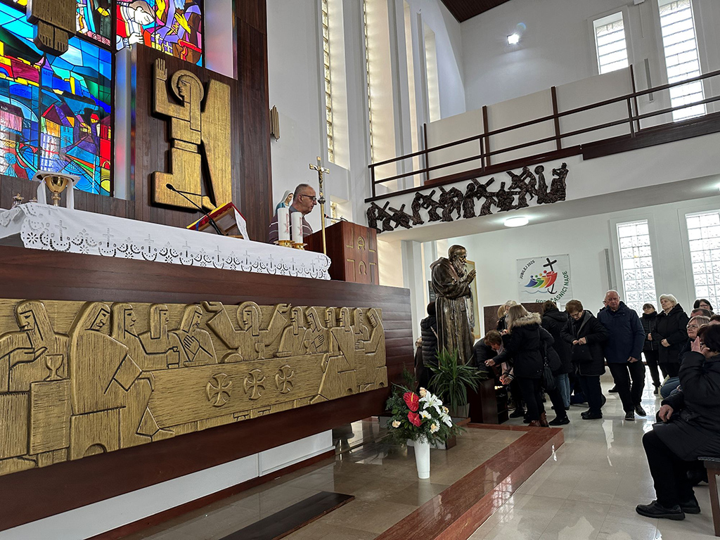U svetištu Sv. Leoploda Mandića dočekao ih je vlč. Franjo Tomić, župnik. Nakon prilike za ispovijed župnik Tomić je predslavio misu i propovijedao. Nakon euharistije bilo je riječi o samom svetištu i povijesti župe te pojašnjenje o mogućnosti dobiti jubilarni oprost za svoje pokojne. Potom je bila prilika za osobnu pobožnost i zajedničko fotografiranje.